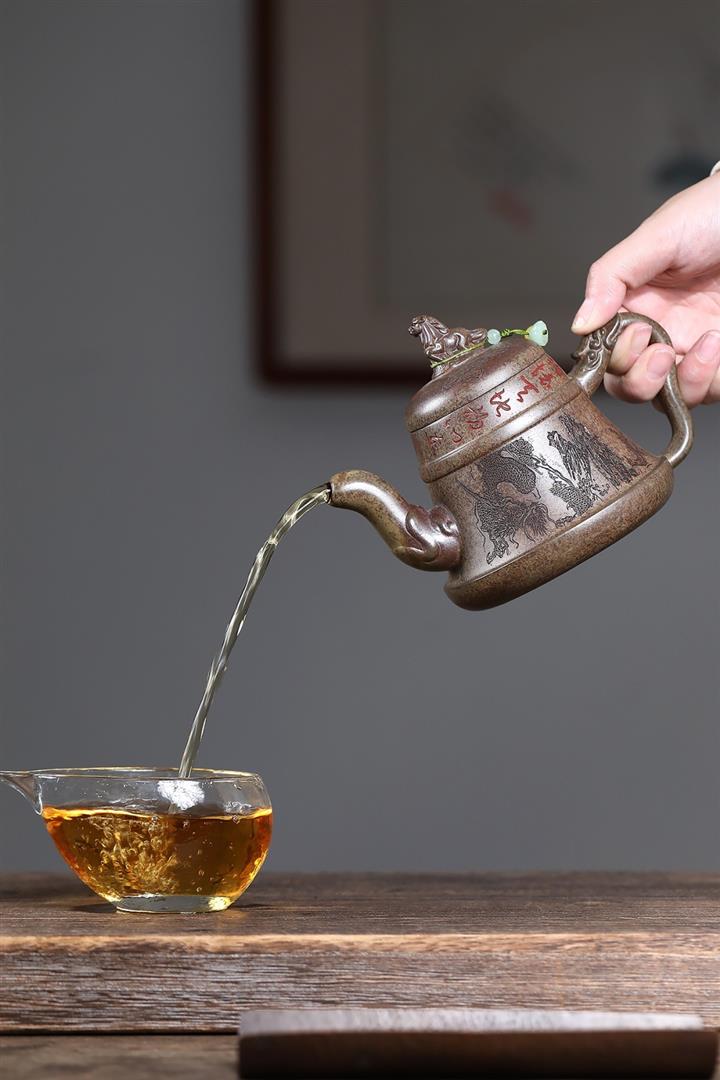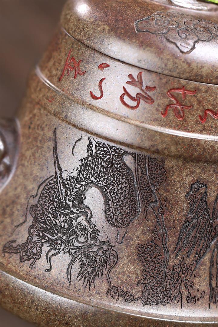 寅·原礦墨綠泥繁花高龍蛋紫砂壺POT6390