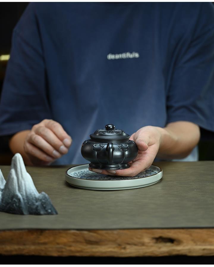 精小煤窯朱泥菱花漢瓦紫砂壺POT5732