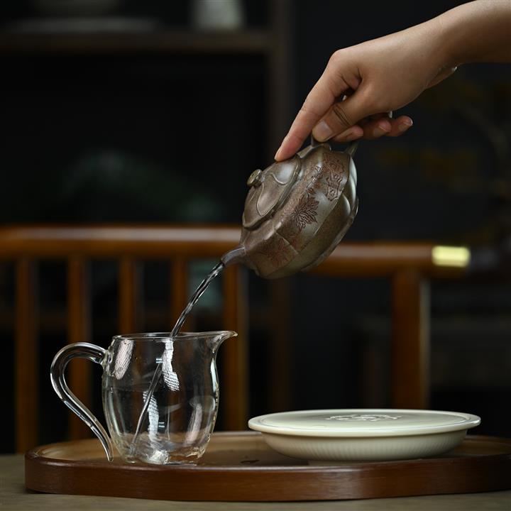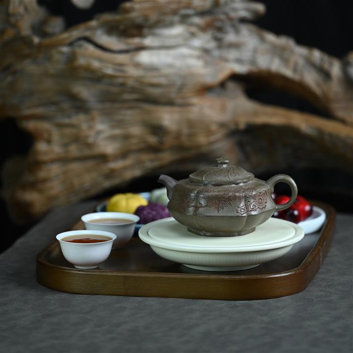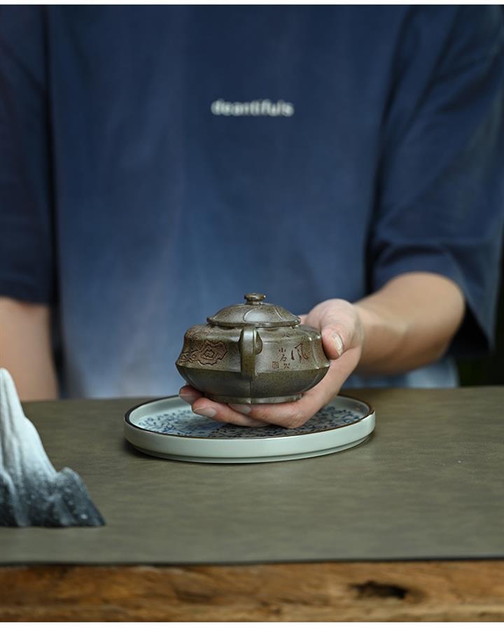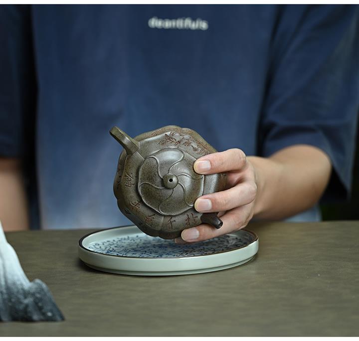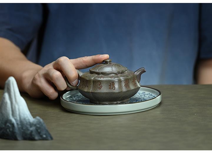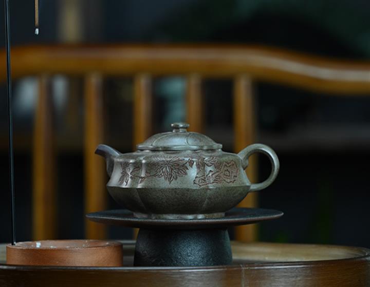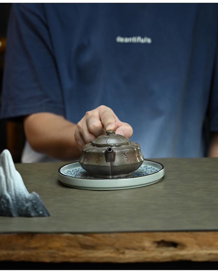 原礦降坡泥手刻觀山桑盤茶壺POT7138