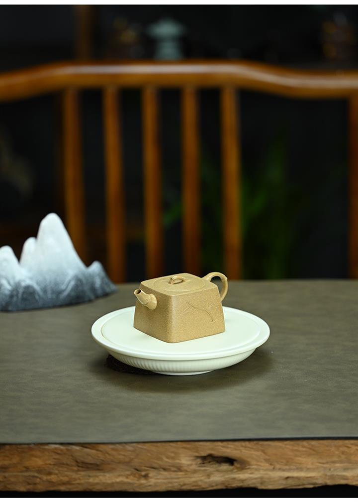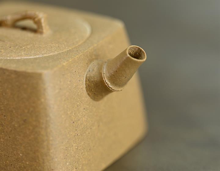 原礦石黃刻繪山水曲壺茶壺POT7683