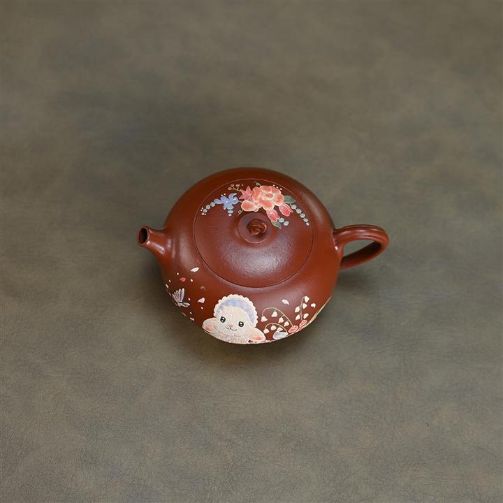 150cc原礦朱泥純玉兔扁西施茶壺POT8449