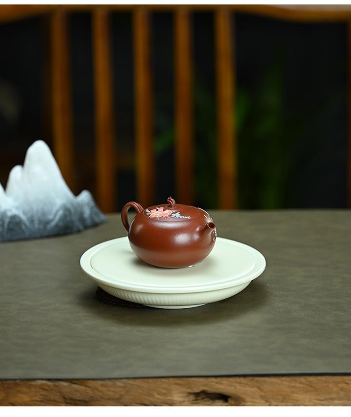 【泥料特點】砂土氣重,似淳實農民,日久使用,漸露鋒芒,養成變化,溫潤莊重。紫砂是壹種雙重氣孔結構的多孔性材質,氣孔微細,密度高。用紫砂壺沏茶,不失原味,且香不渙散,得茶之真香真味。紫砂使用越久,壺身色澤越發光亮照人,氣韻溫雅。紫砂壺長久使用器身會因撫摸擦拭,變得越發溫潤光澤。