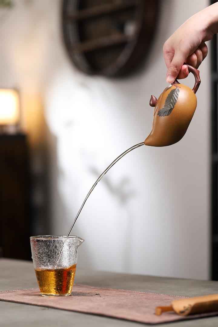 【作品介紹】此款壺形線條流暢,壺把,壺嘴,壺身壹氣呵成栩栩如生,是收藏把玩的好壺,泥料色澤古樸典雅,日久使用,漸露鋒芒,養成變化快,溫潤莊重,用其泡茶,使用的年代久,壺身就溫潤,泡出來的茶湯也就醇郁芳馨。