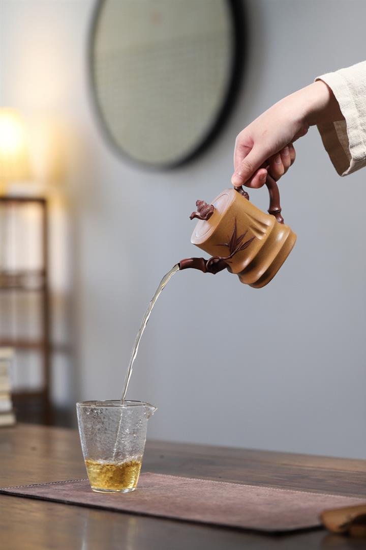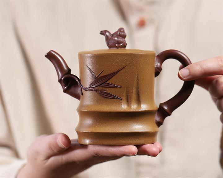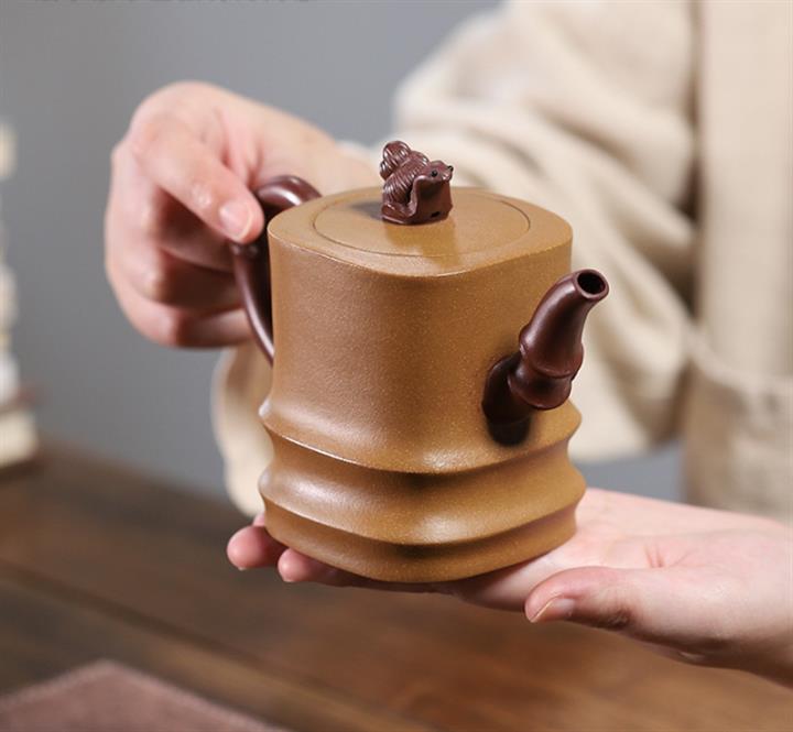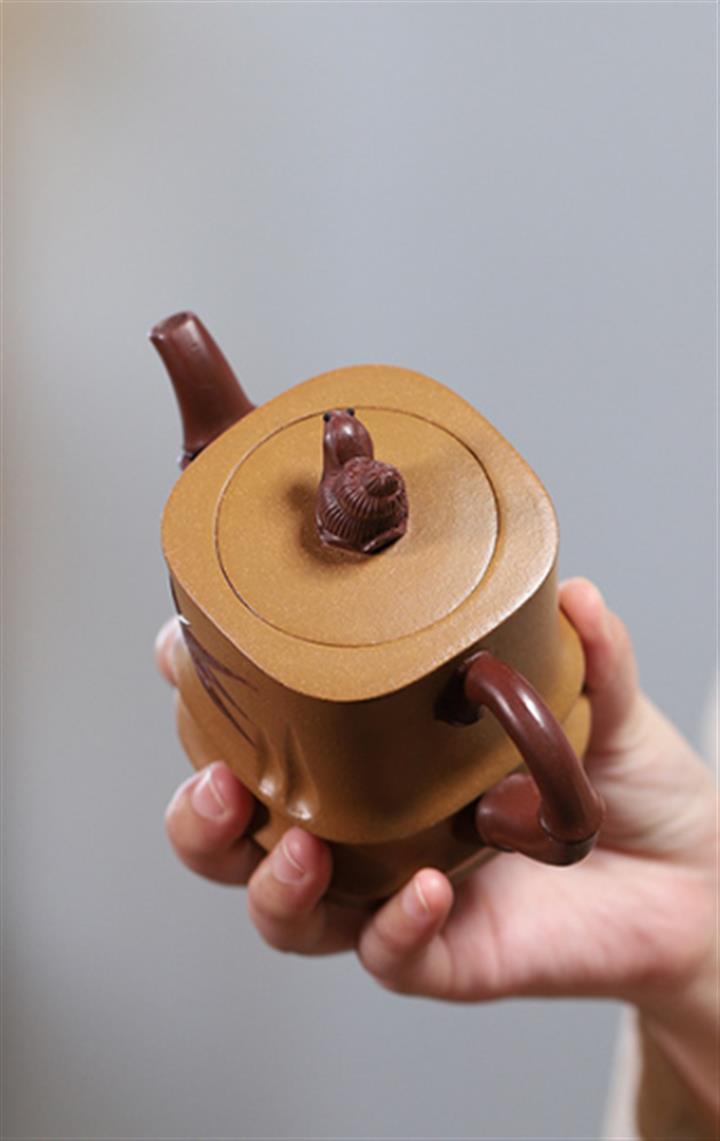 【作品介紹】此款壺形線條流暢,壺把,壺嘴,壺身壹氣呵成栩栩如生,是收藏把玩的好壺,泥料色澤古樸典雅,日久使用,漸露鋒芒,養成變化快,溫潤莊重,用其泡茶,使用的年代久,壺身就溫潤,泡出來的茶湯也就醇郁芳馨。