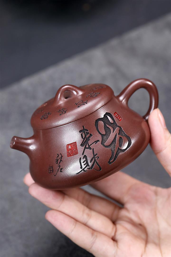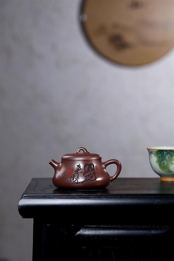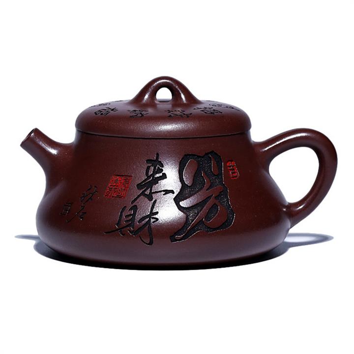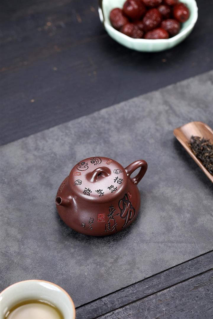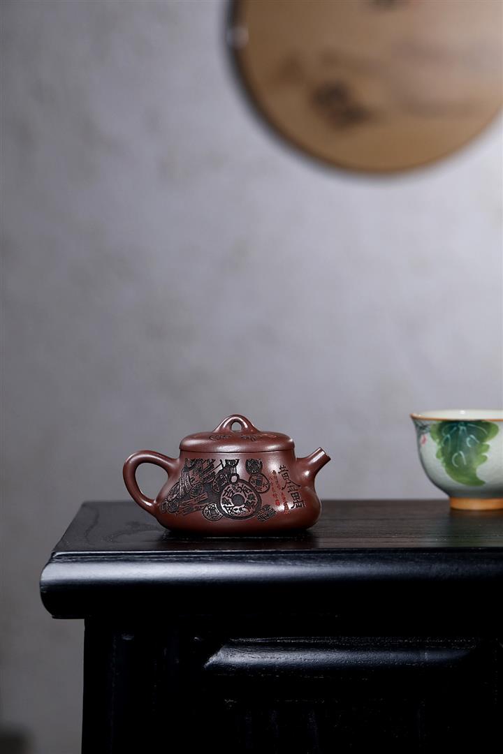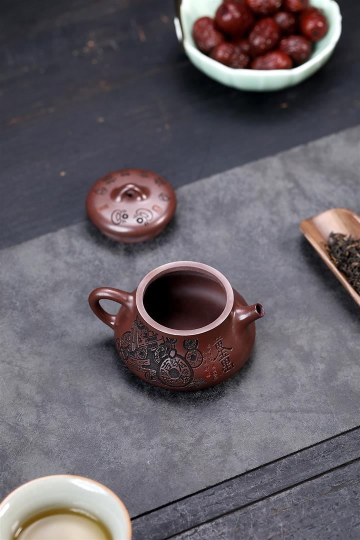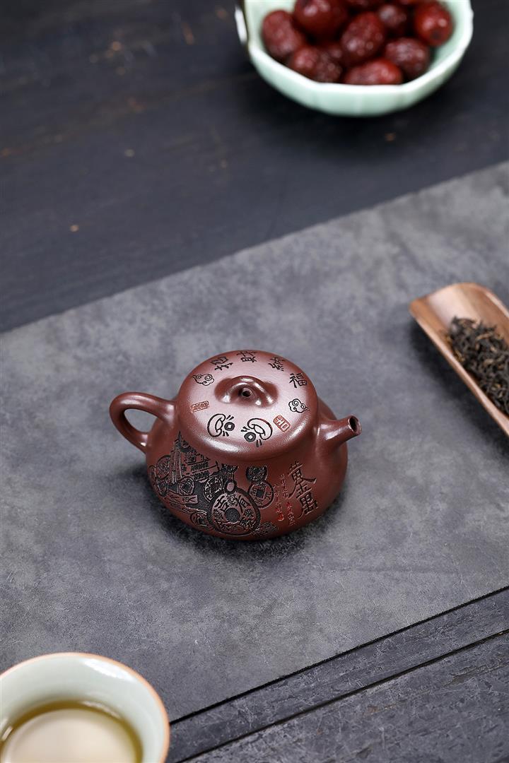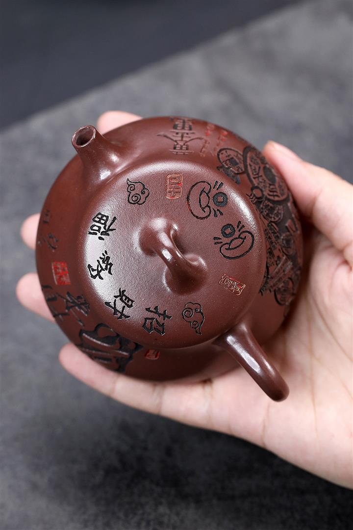 150cc原礦紫泥手工刻繪八方來財茶壺POT8465