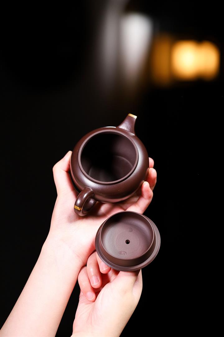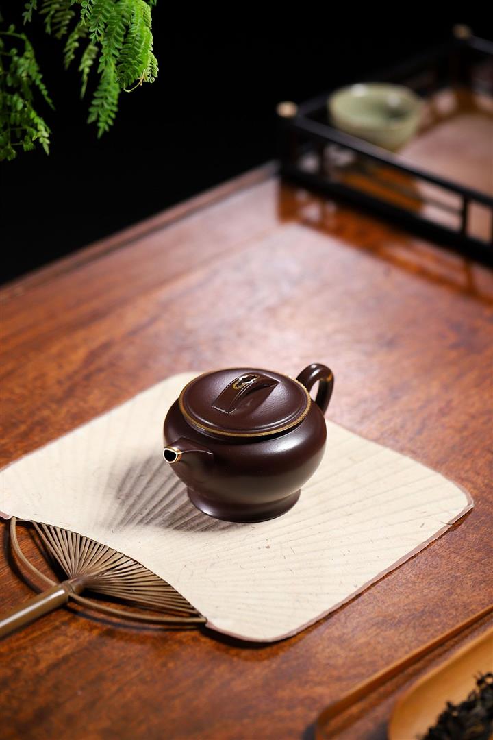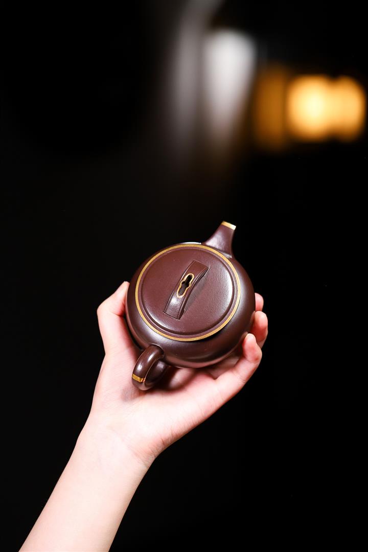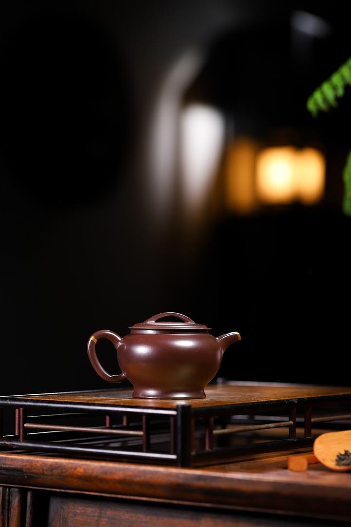 200cc原礦紫朱泥描金漢瓦茶壺POT8468