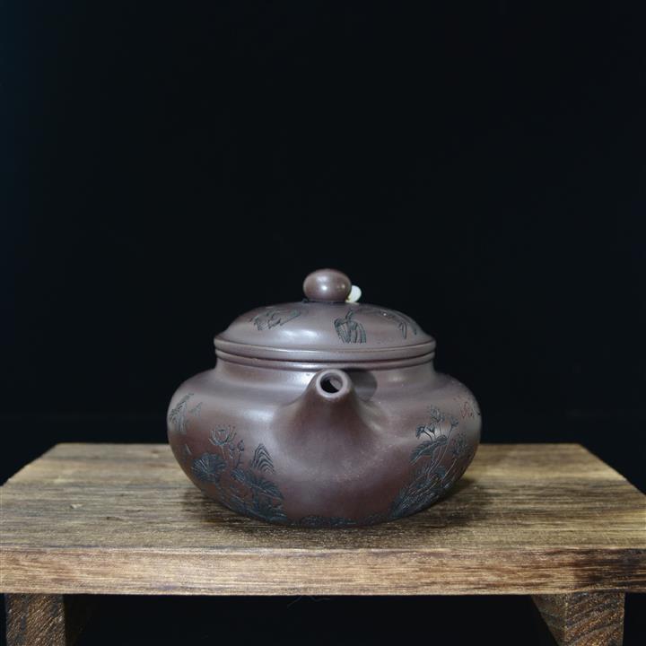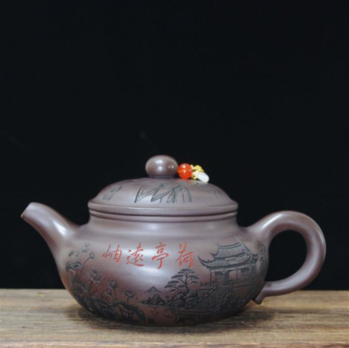 340cc原礦紫泥刻繪山水仿古茶壺POT8482