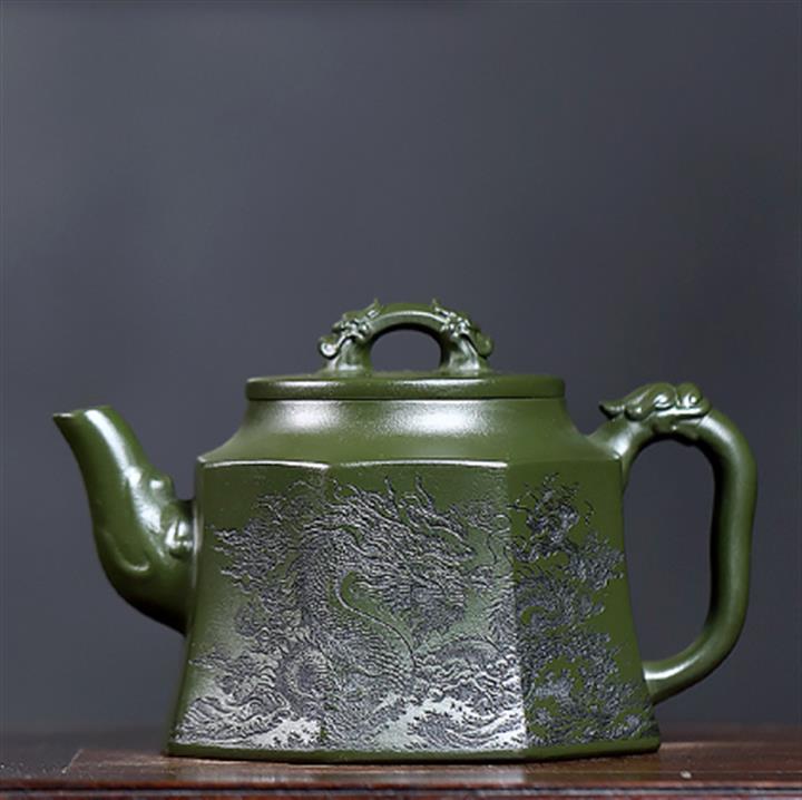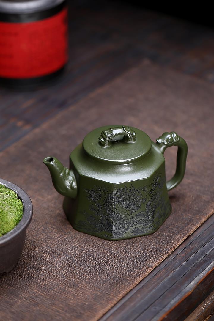 350cc原礦民國綠泥八方龍權泡茶壺POT8484
