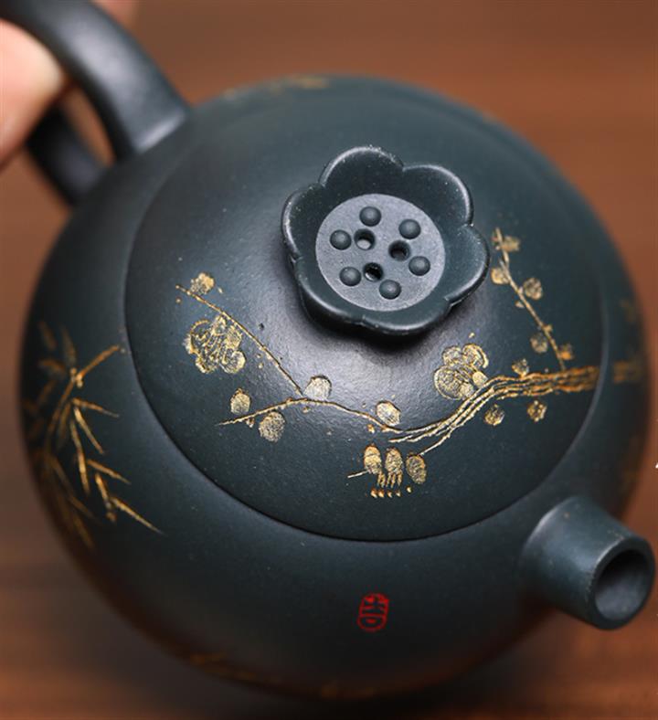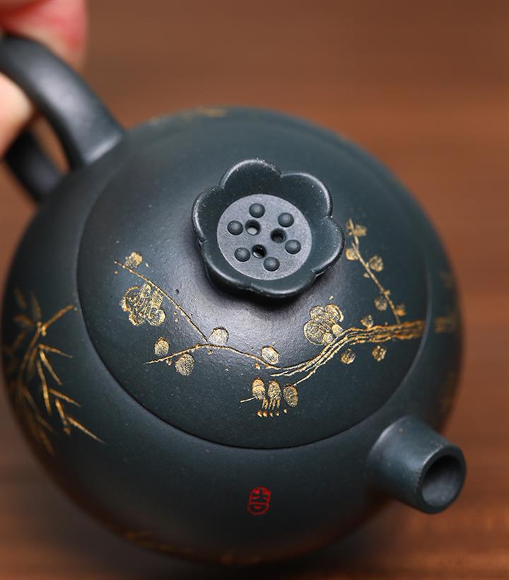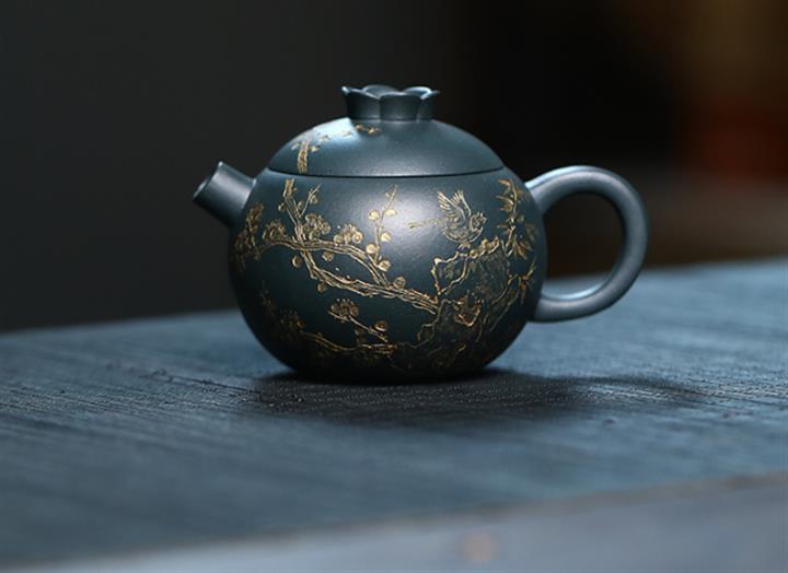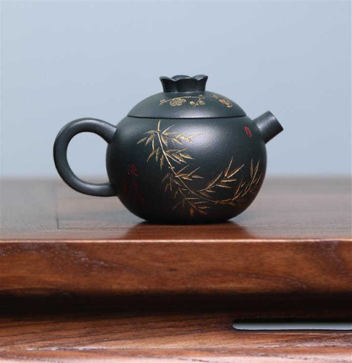 140cc九齡君子蘭墨綠泥小石榴茶壺POT8493