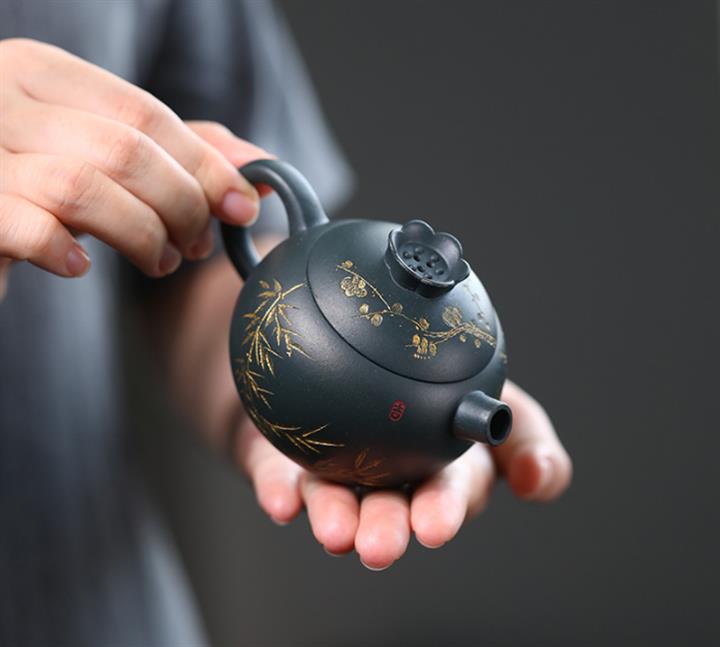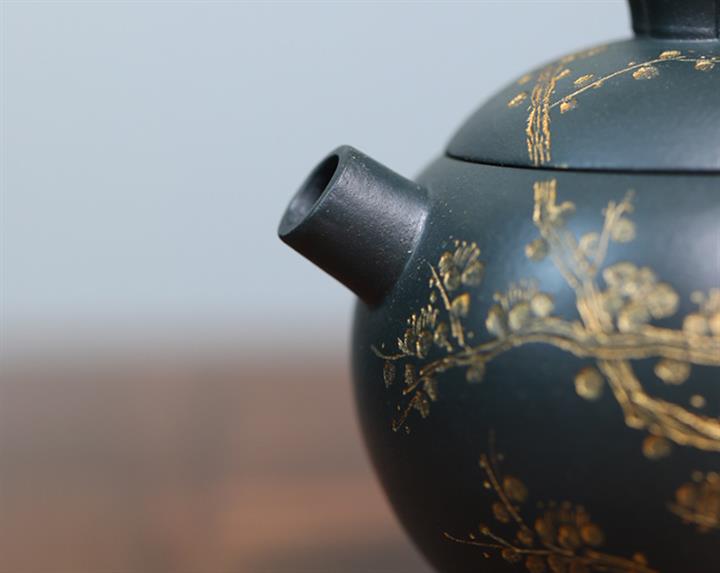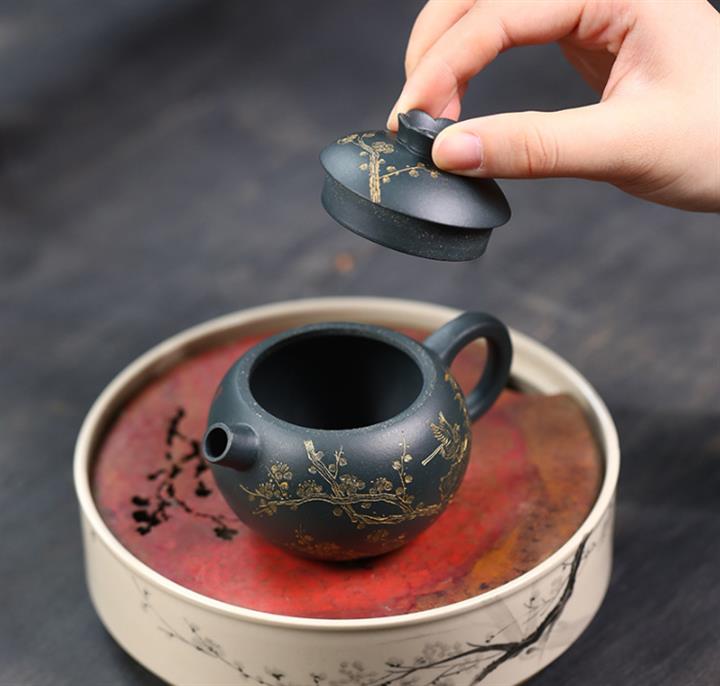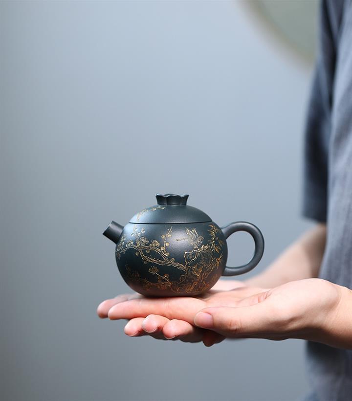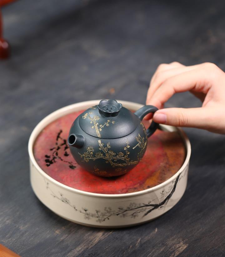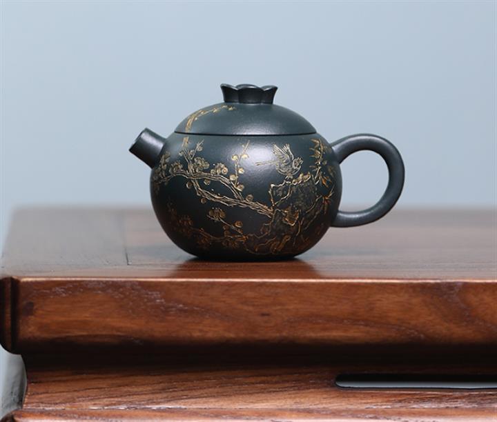 原礦皺皮朱泥墨梅扁碗玉壺茶壺POT6804