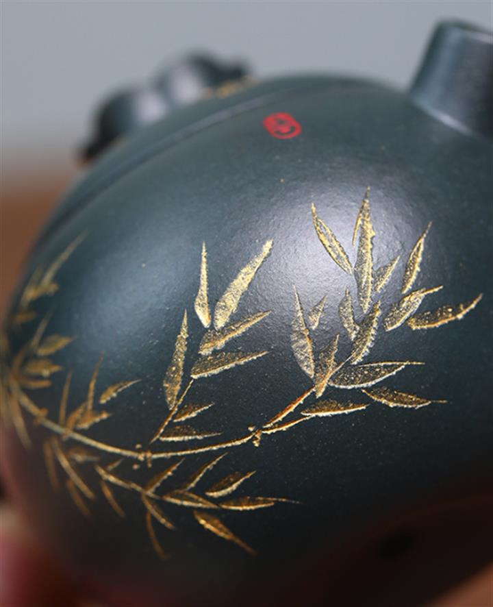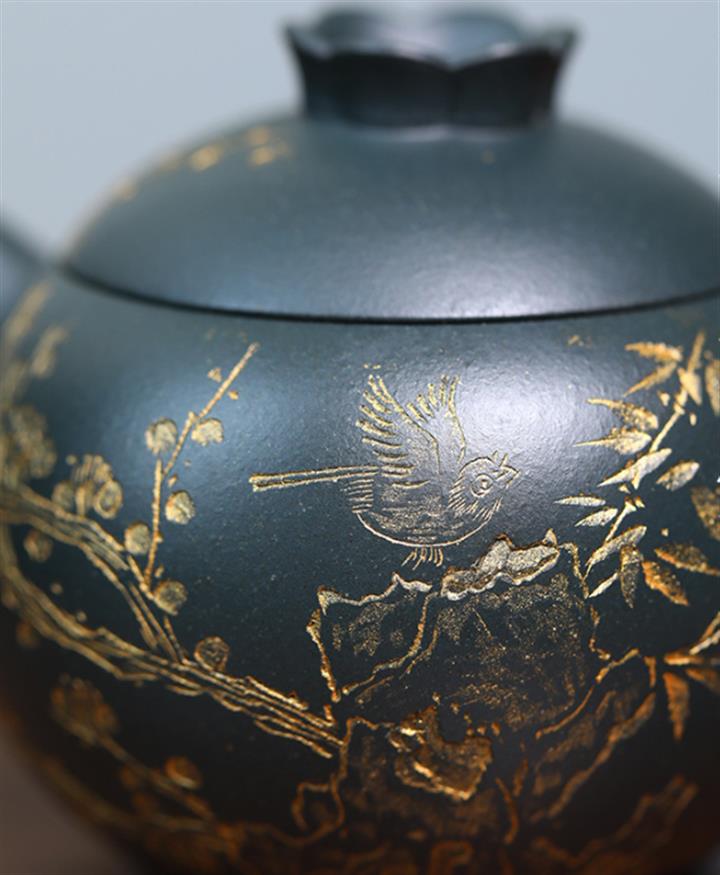 原礦綠泥手工鳥語花香竹節高升茶壺POT6802
