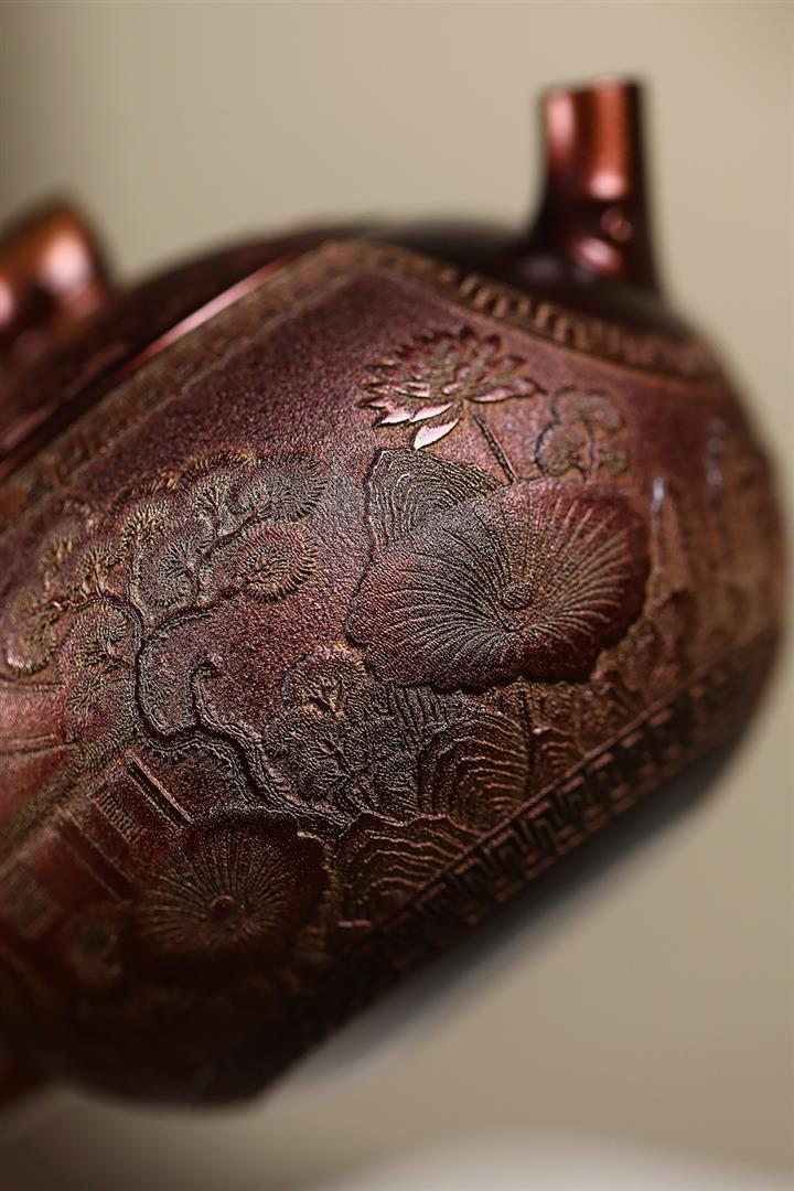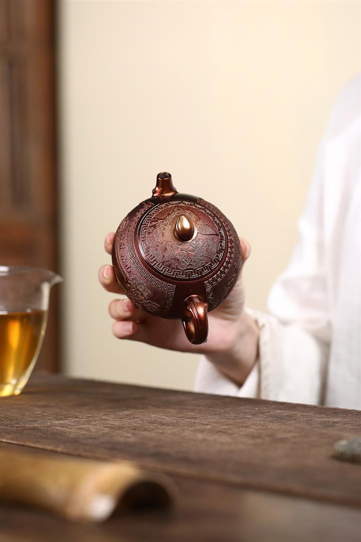 原礦赤龍血砂魚趣六方宮燈茶壺POT7555