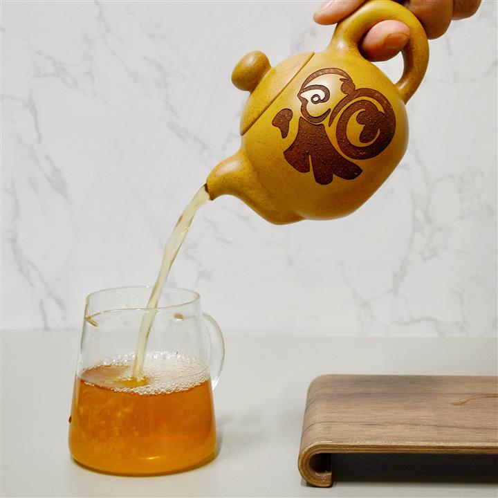 【泥料特點】砂土氣重,似淳實農民,日久使用,漸露鋒芒,養成變化,溫潤莊重。紫砂是壹種雙重氣孔結構的多孔性材質,氣孔微細,密度高。用紫砂壺沏茶,不失原味,且香不渙散,得茶之真香真味。紫砂使用越久,壺身色澤越發光亮照人,氣韻溫雅。紫砂壺長久使用器身會因撫摸擦拭,變得越發溫潤光澤。