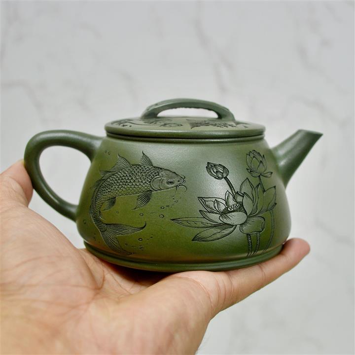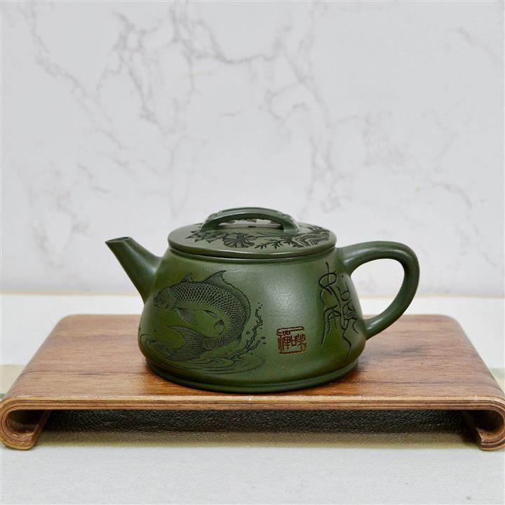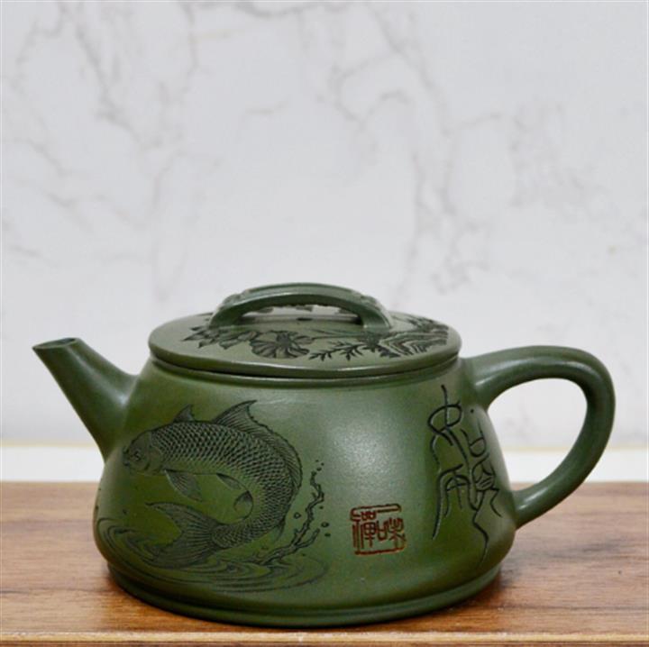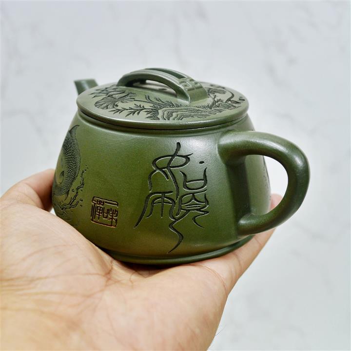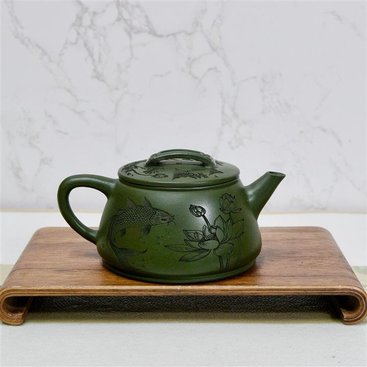 340cc原礦本山綠泥繪刻四方壺茶壺POT8887