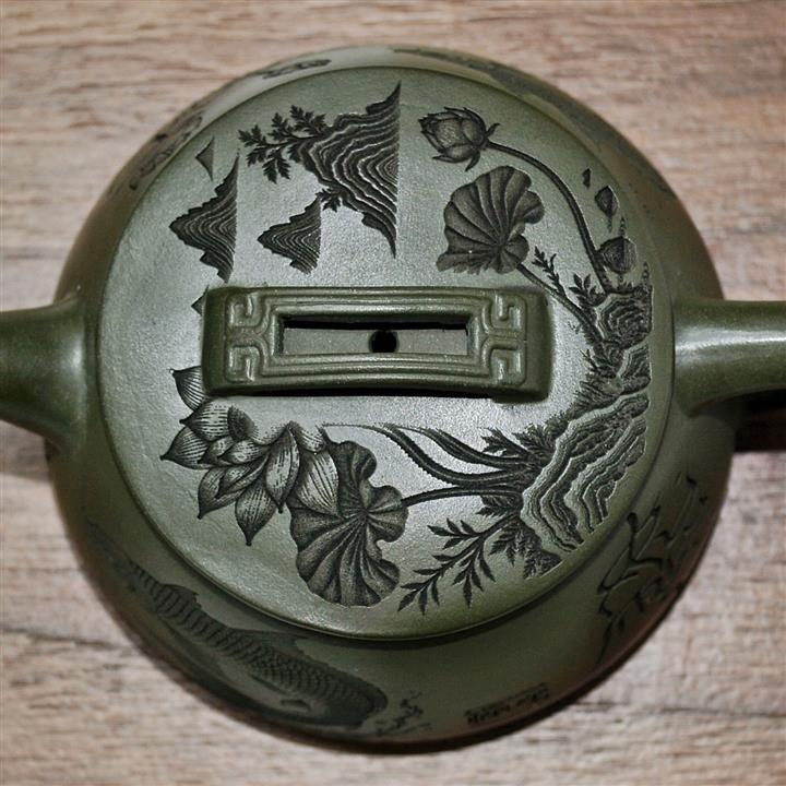 480cc原礦紫泥繪刻荷花汲思茶壺POT8886