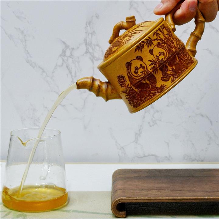 【泥料特點】砂土氣重,似淳實農民,日久使用,漸露鋒芒,養成變化,溫潤莊重。紫砂是壹種雙重氣孔結構的多孔性材質,氣孔微細,密度高。用紫砂壺沏茶,不失原味,且香不渙散,得茶之真香真味。紫砂使用越久,壺身色澤越發光亮照人,氣韻溫雅。紫砂壺長久使用器身會因撫摸擦拭,變得越發溫潤光澤。