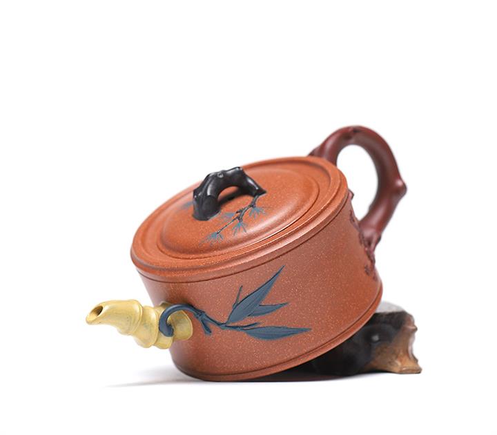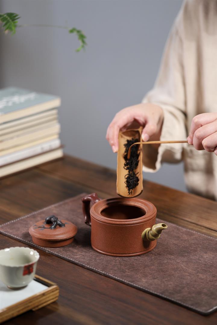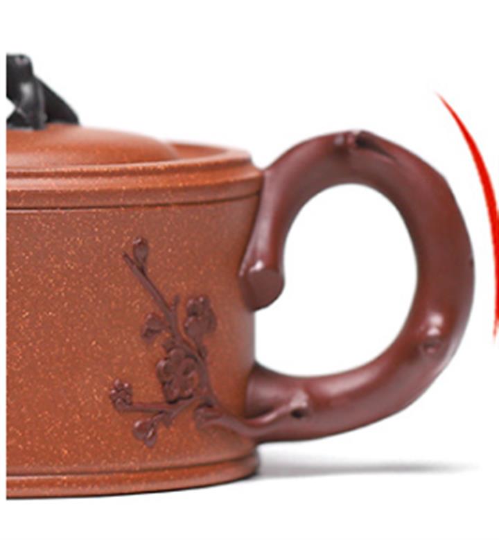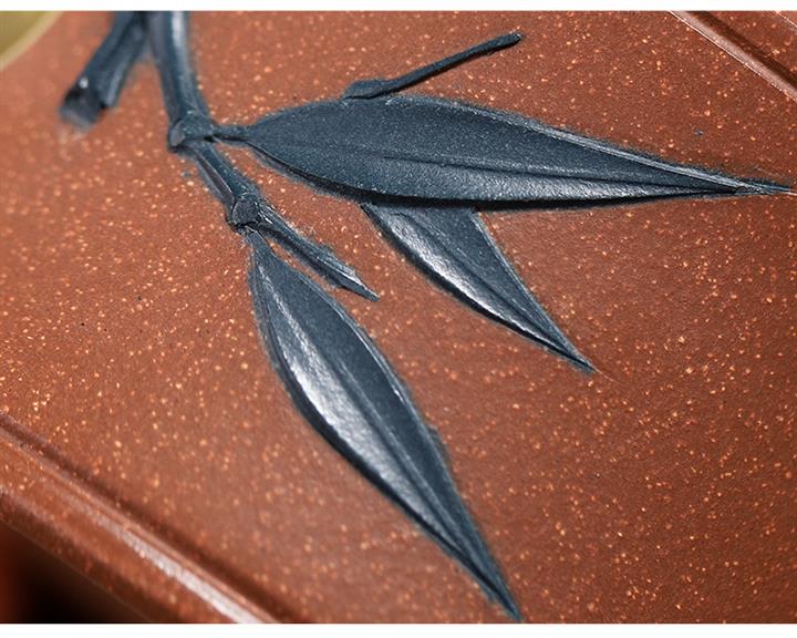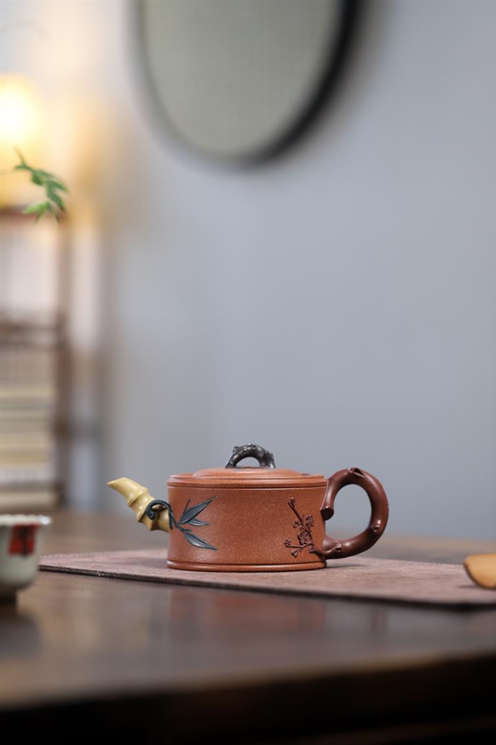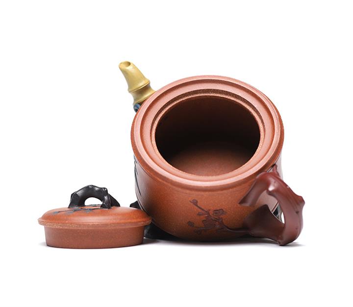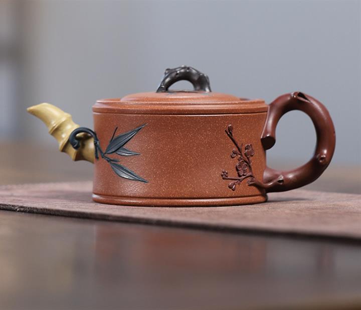 【泥料特點】砂土氣重,似淳實農民,日久使用,漸露鋒芒,養成變化,溫潤莊重。紫砂是壹種雙重氣孔結構的多孔性材質,氣孔微細,密度高。用紫砂壺沏茶,不失原味,且香不渙散,得茶之真香真味。紫砂使用越久,壺身色澤越發光亮照人,氣韻溫雅。紫砂壺長久使用器身會因撫摸擦拭,變得越發溫潤光澤。