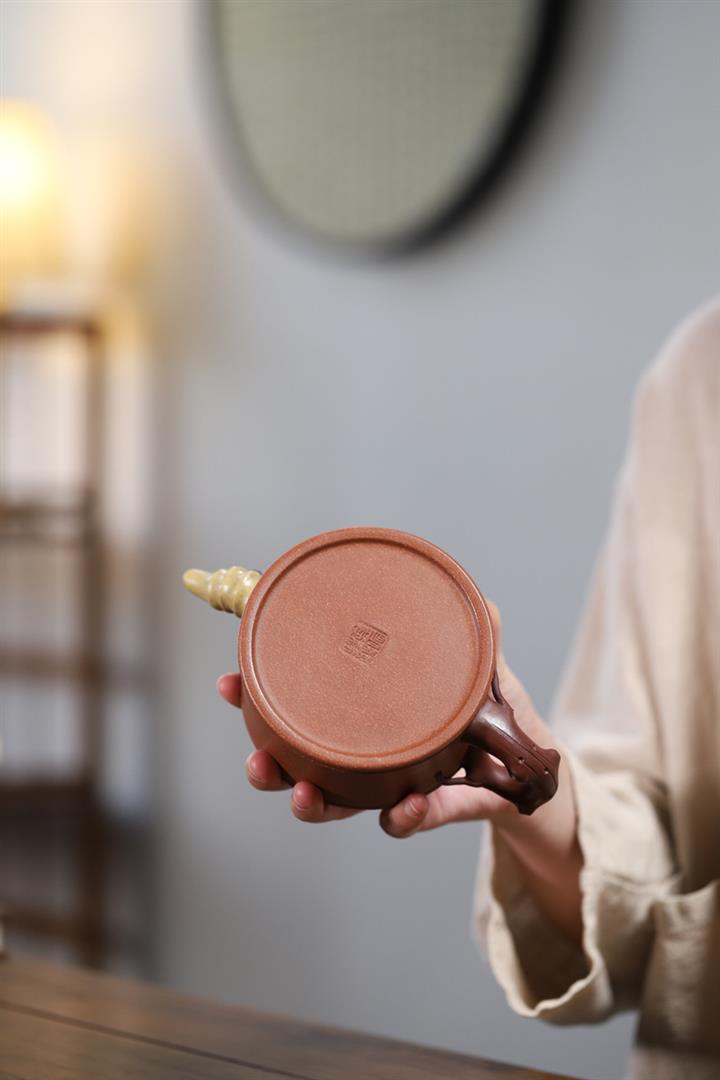 【作品介紹】此款壺形線條流暢,壺把,壺嘴,壺身壹氣呵成栩栩如生,是收藏把玩的好壺,泥料色澤古樸典雅,日久使用,漸露鋒芒,養成變化快,溫潤莊重,用其泡茶,使用的年代久,壺身就溫潤,泡出來的茶湯也就醇郁芳馨。