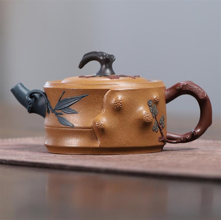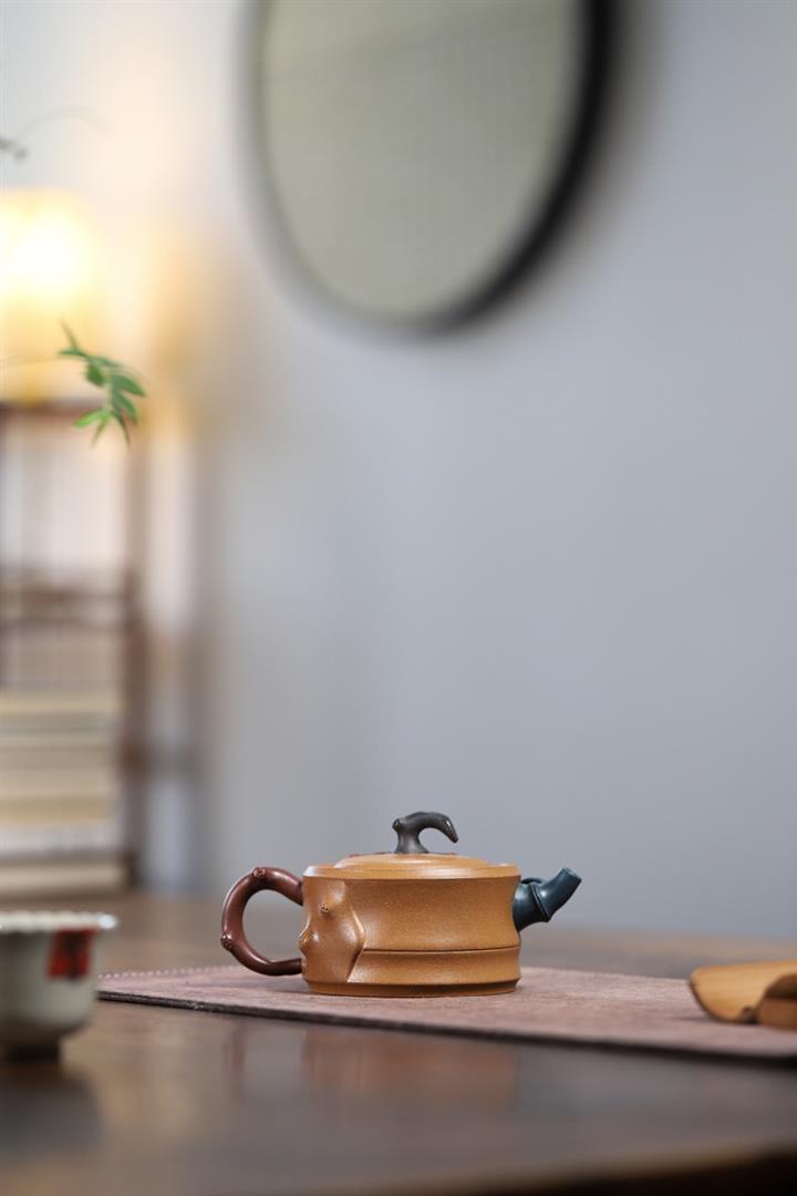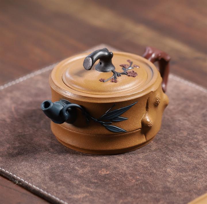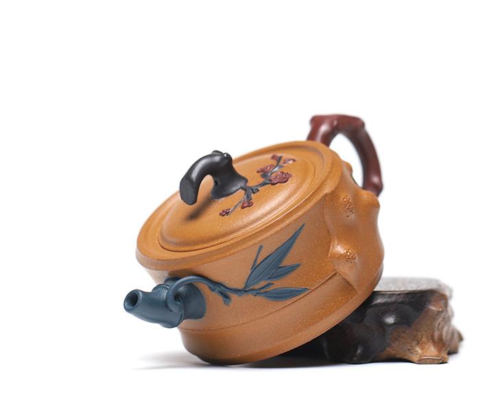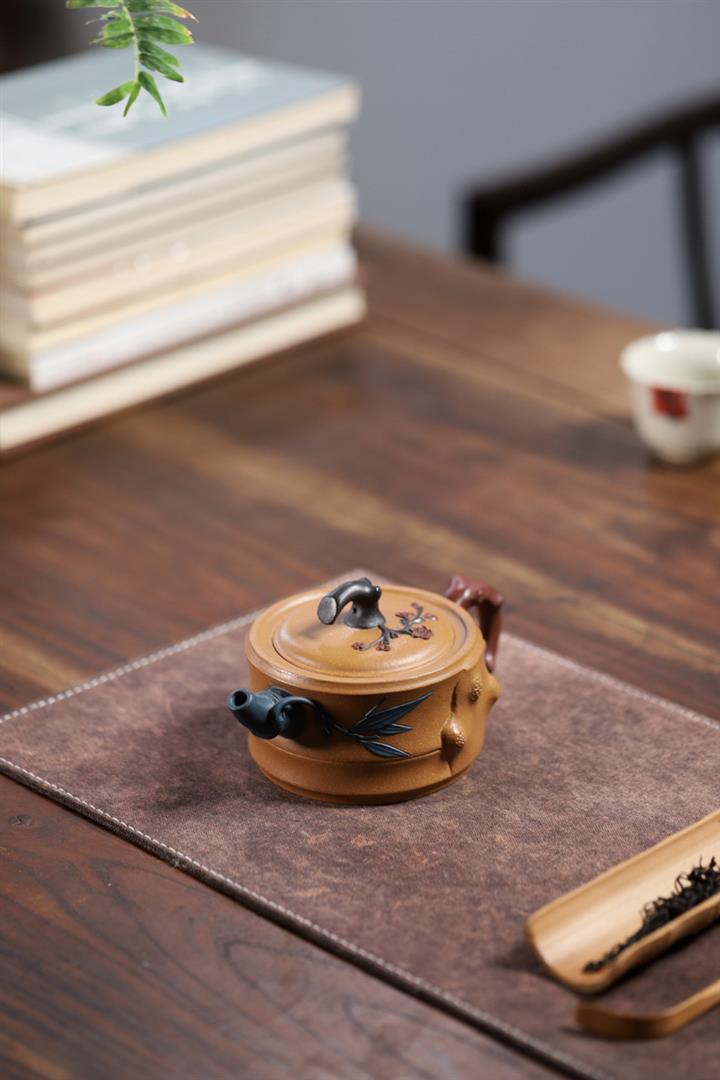 做舊朱泥竹韻擺飾紫砂壺汪寅仙底章
