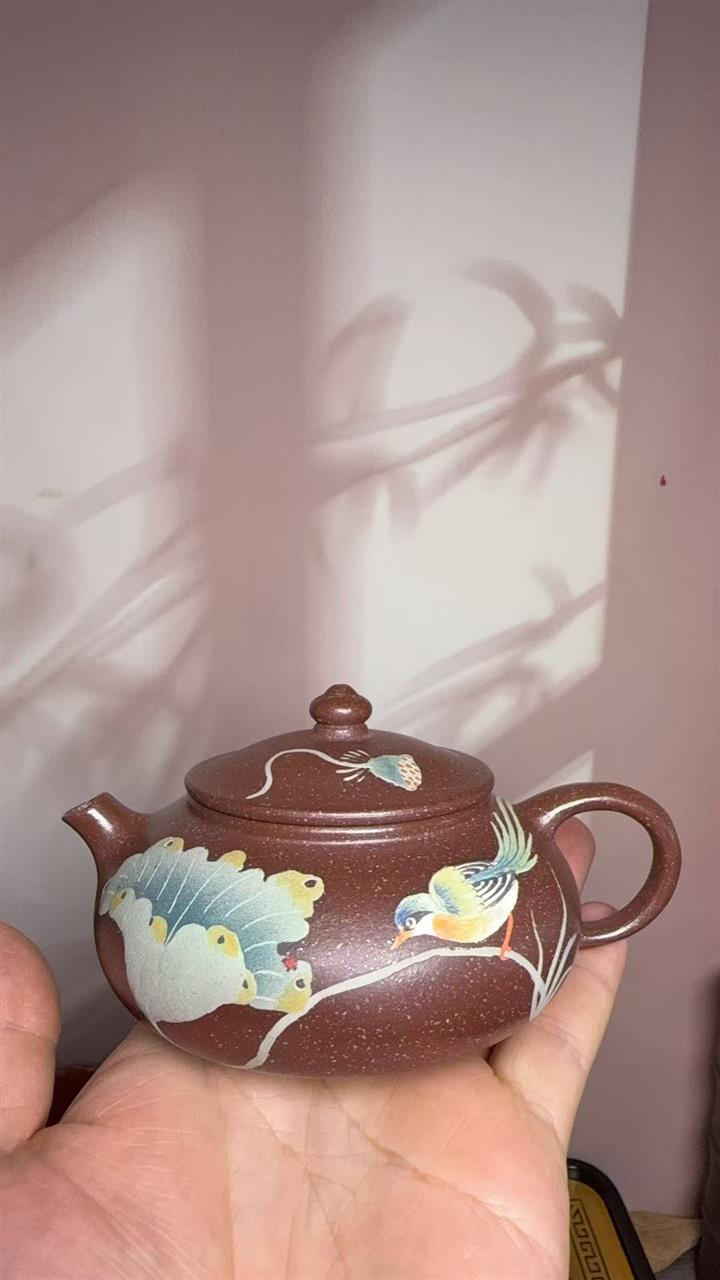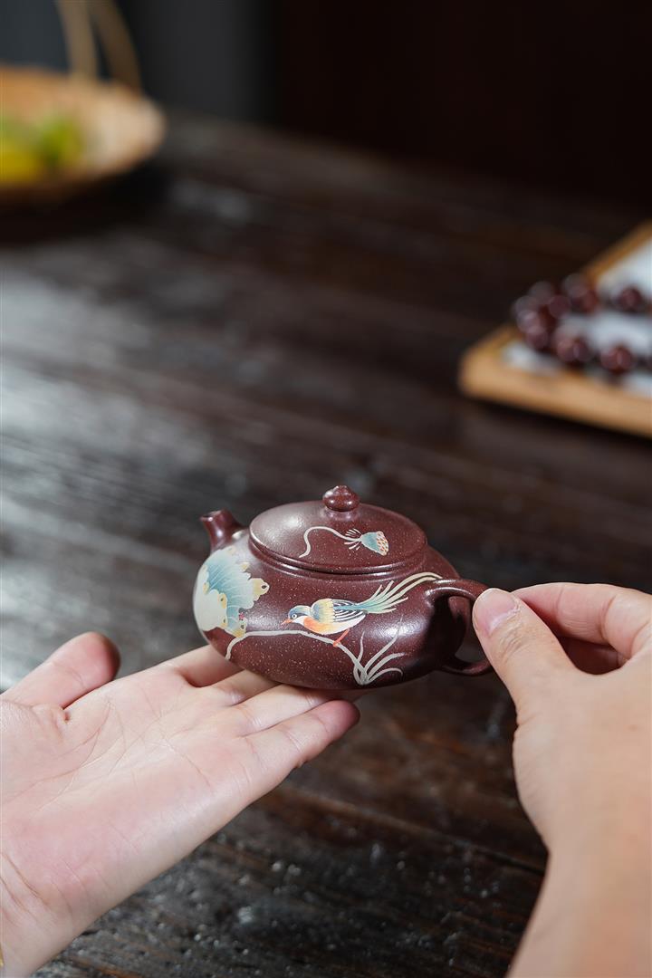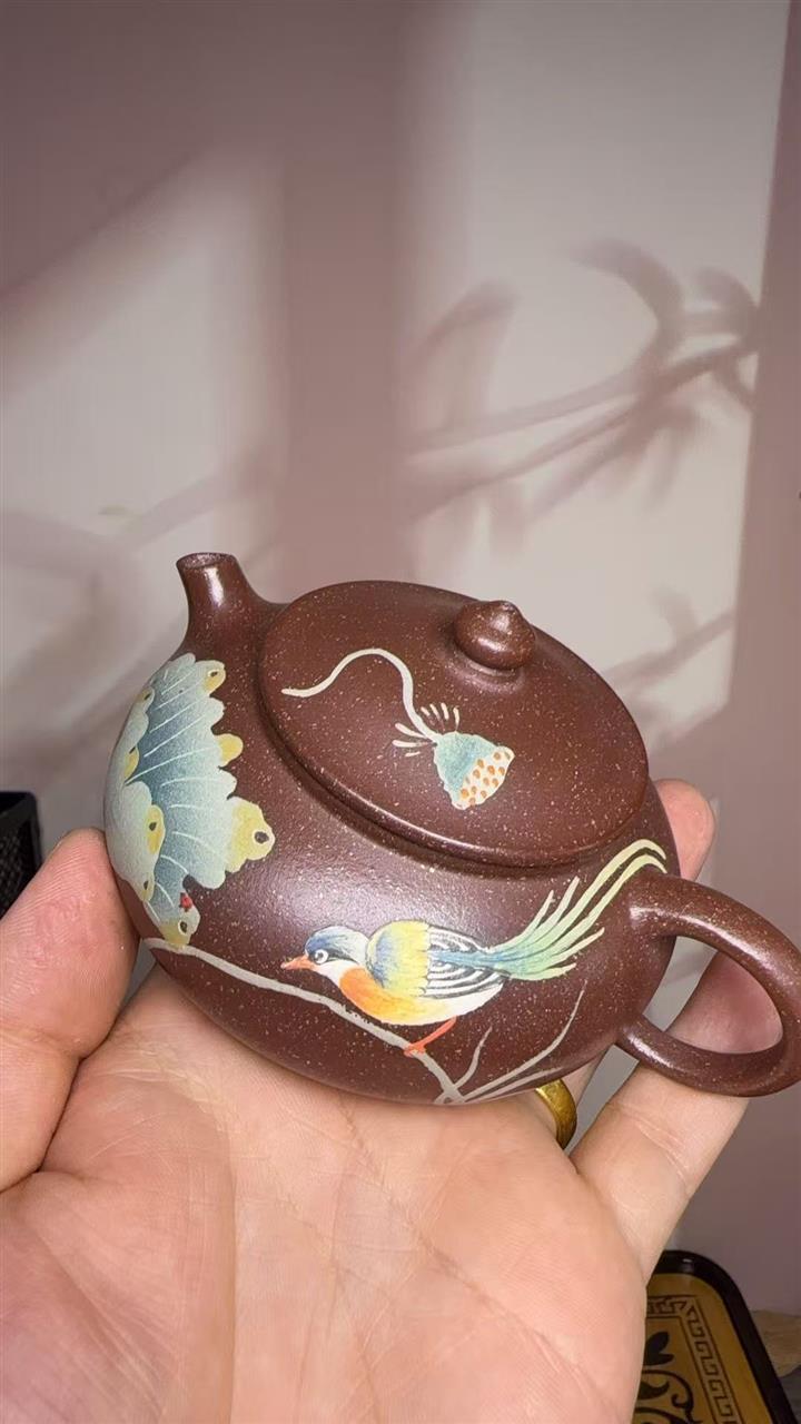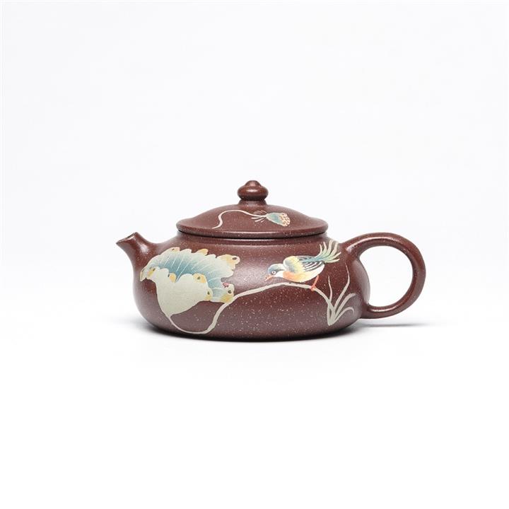 原礦黑朱泥泥繪花鳥憨瓢茶壺POT7426