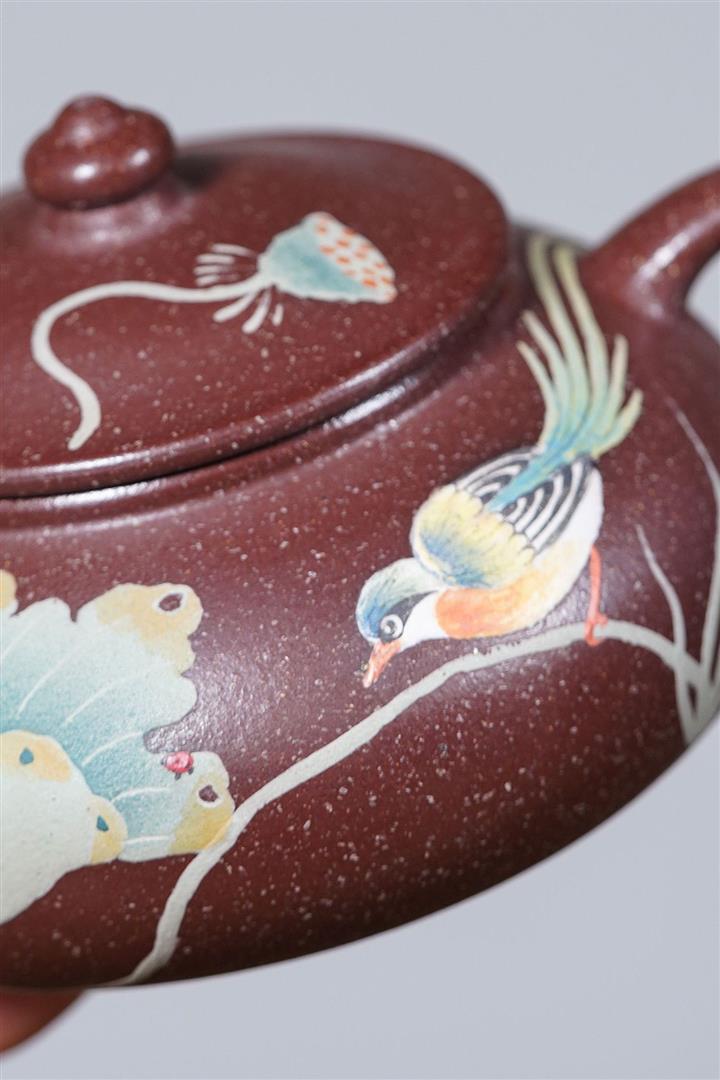 原礦朱泥琺瑯彩描金虛扁文人茶壺POT7422