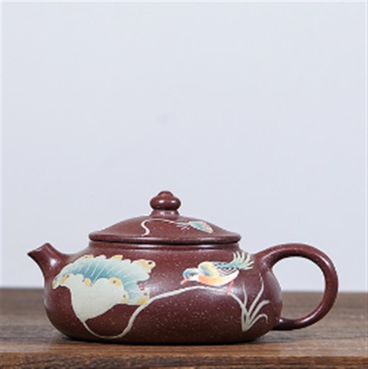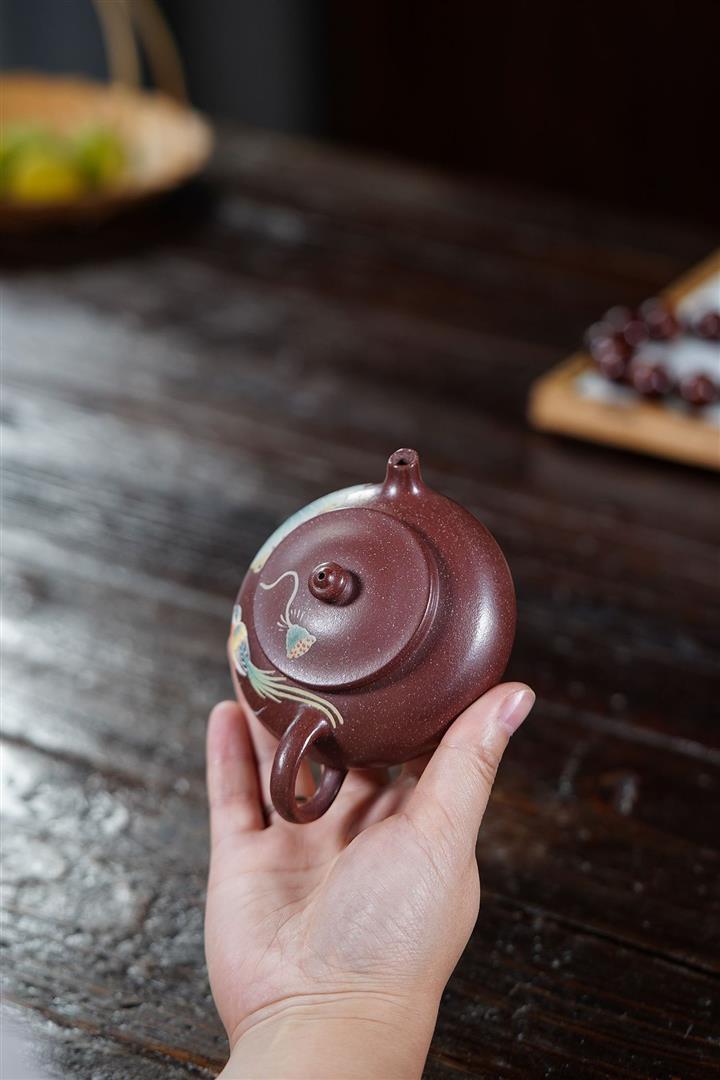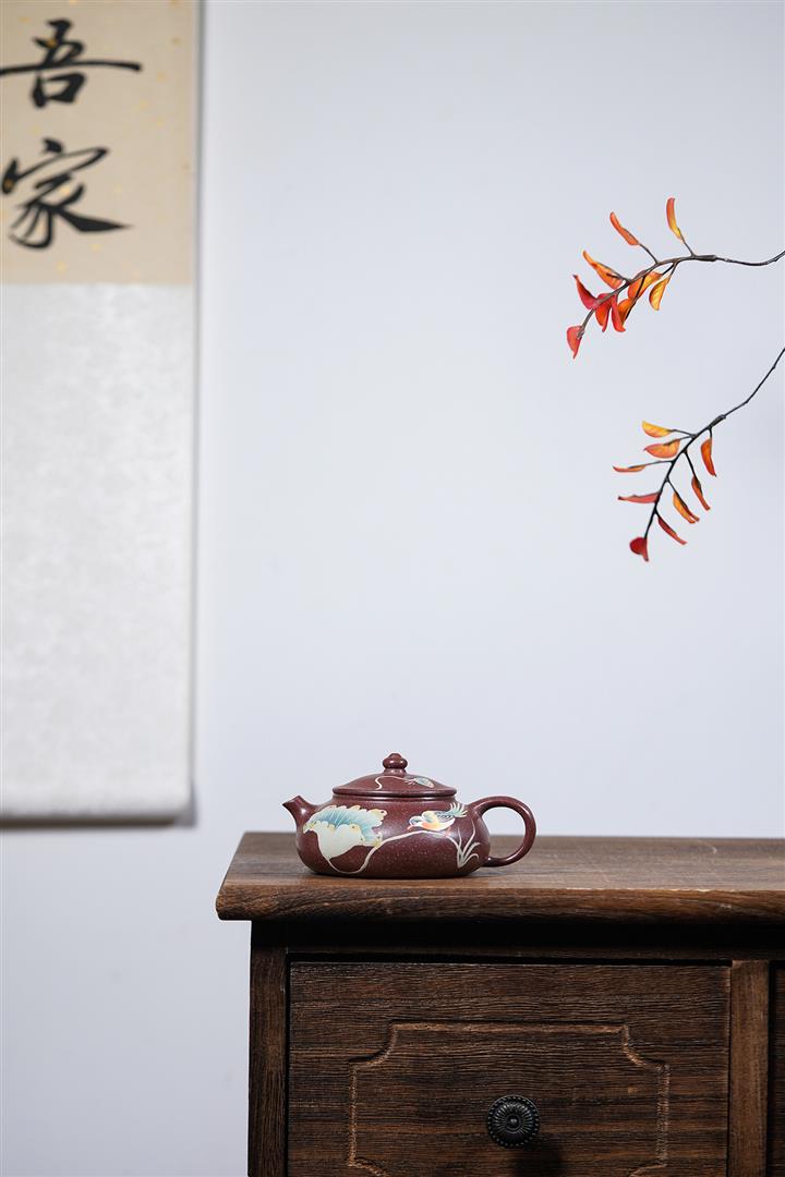 原礦朱泥琺瑯彩描金桑盤茶壺POT7424