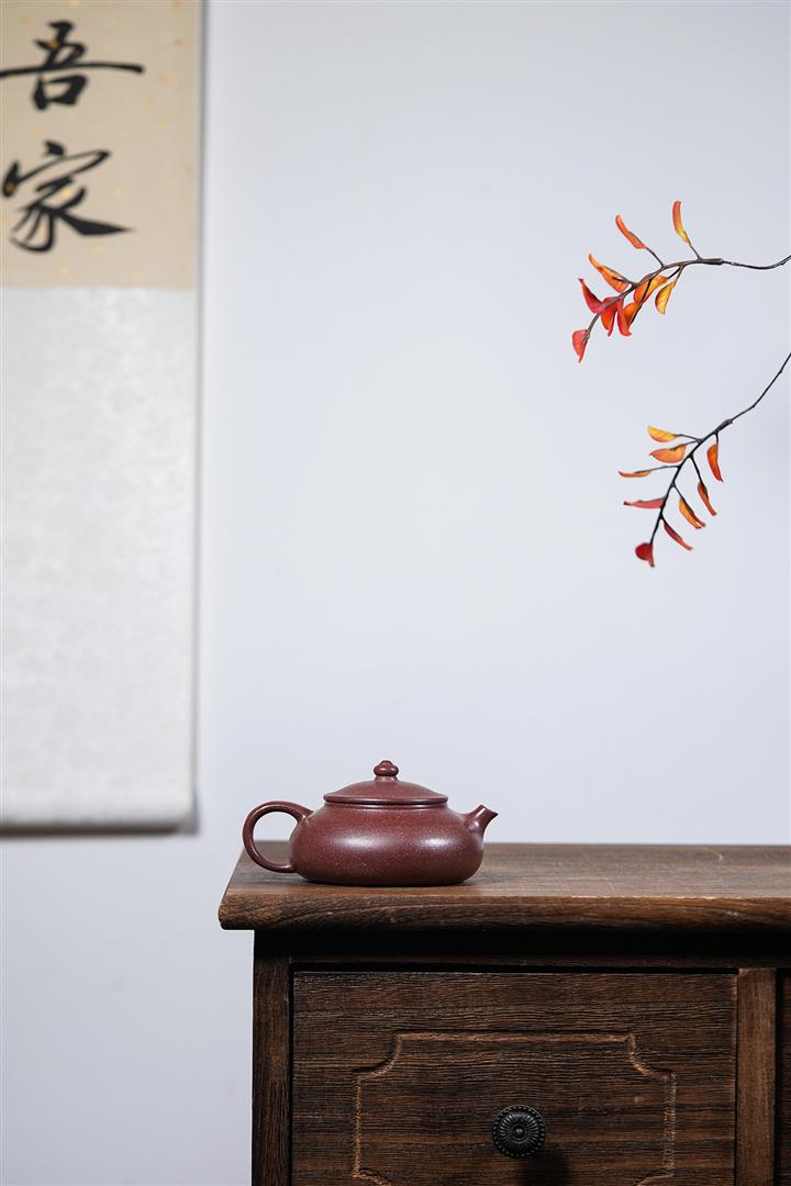 【泥料特點】砂土氣重,似淳實農民,日久使用,漸露鋒芒,養成變化,溫潤莊重。紫砂是壹種雙重氣孔結構的多孔性材質,氣孔微細,密度高。用紫砂壺沏茶,不失原味,且香不渙散,得茶之真香真味。紫砂使用越久,壺身色澤越發光亮照人,氣韻溫雅。紫砂壺長久使用器身會因撫摸擦拭,變得越發溫潤光澤。