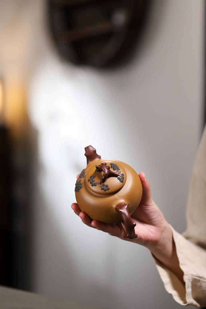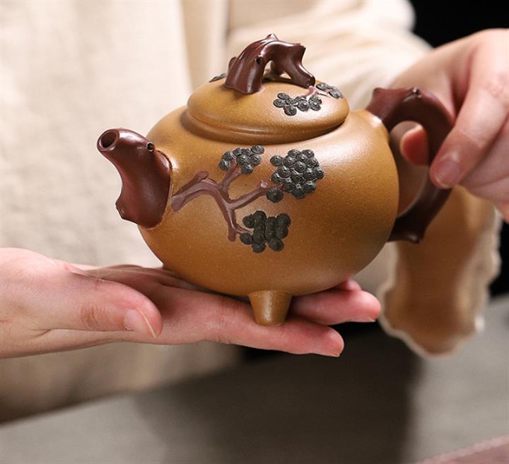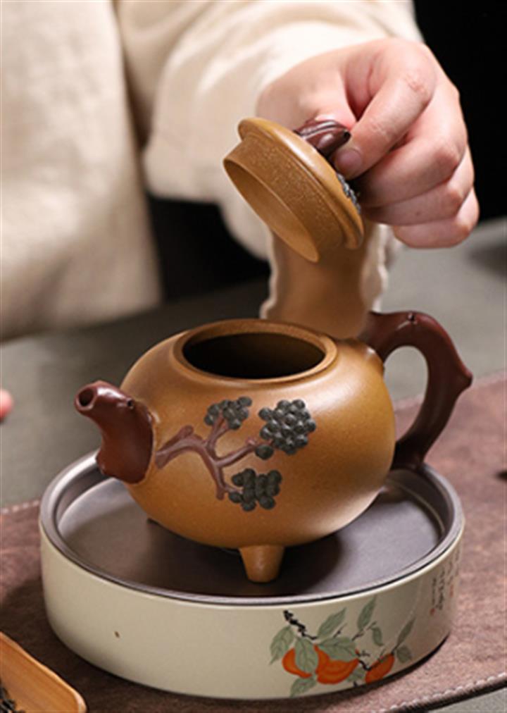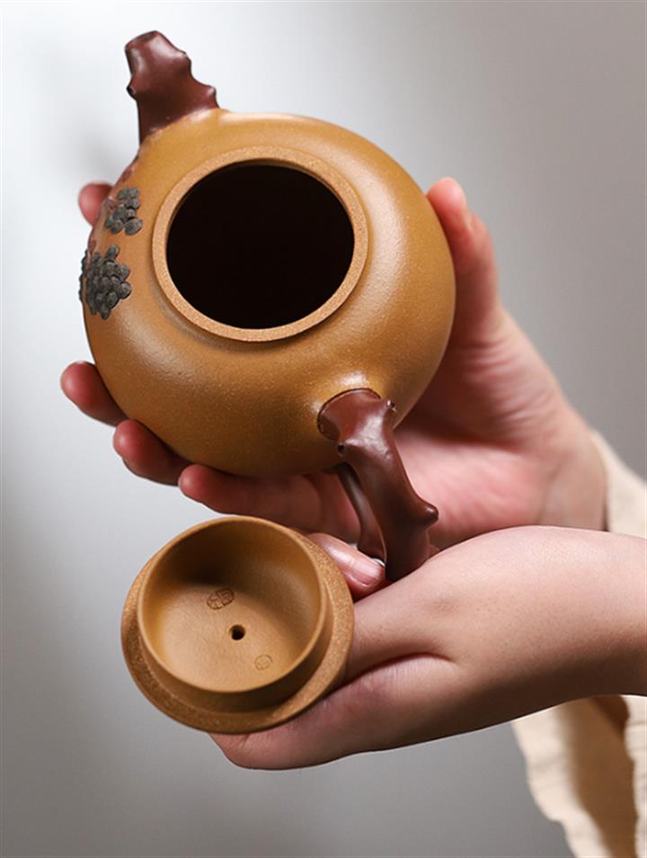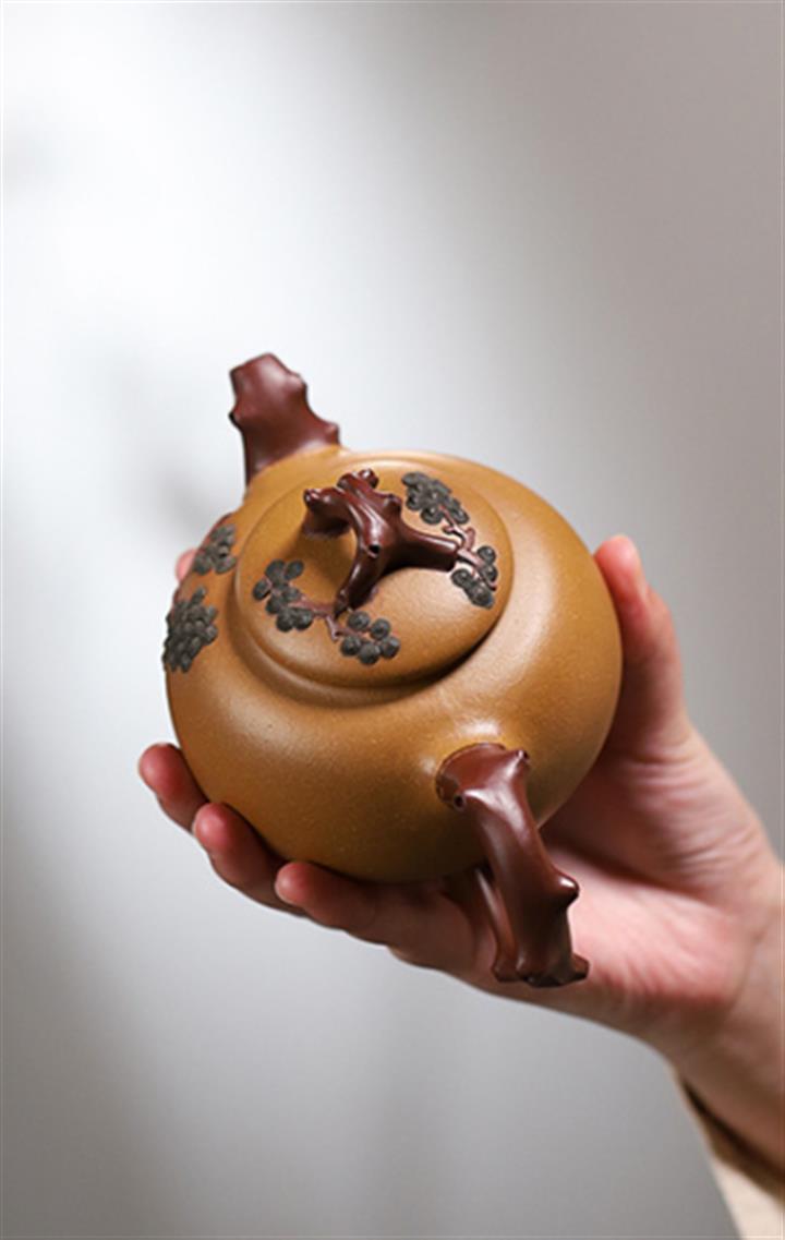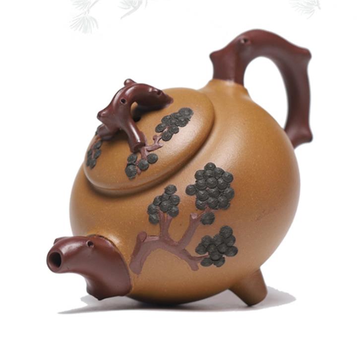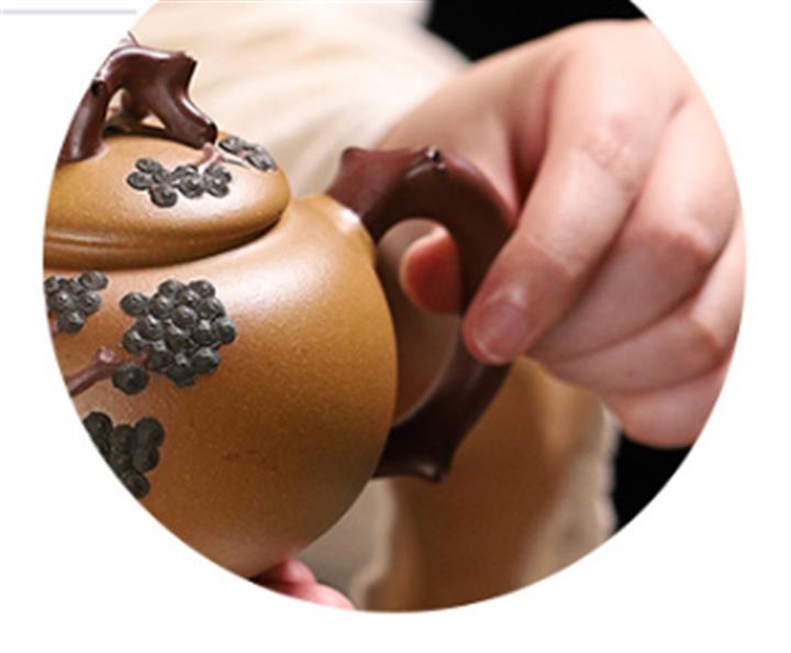 【泥料特點】砂土氣重,似淳實農民,日久使用,漸露鋒芒,養成變化,溫潤莊重。紫砂是壹種雙重氣孔結構的多孔性材質,氣孔微細,密度高。用紫砂壺沏茶,不失原味,且香不渙散,得茶之真香真味。紫砂使用越久,壺身色澤越發光亮照人,氣韻溫雅。紫砂壺長久使用器身會因撫摸擦拭,變得越發溫潤光澤。
