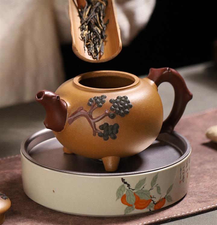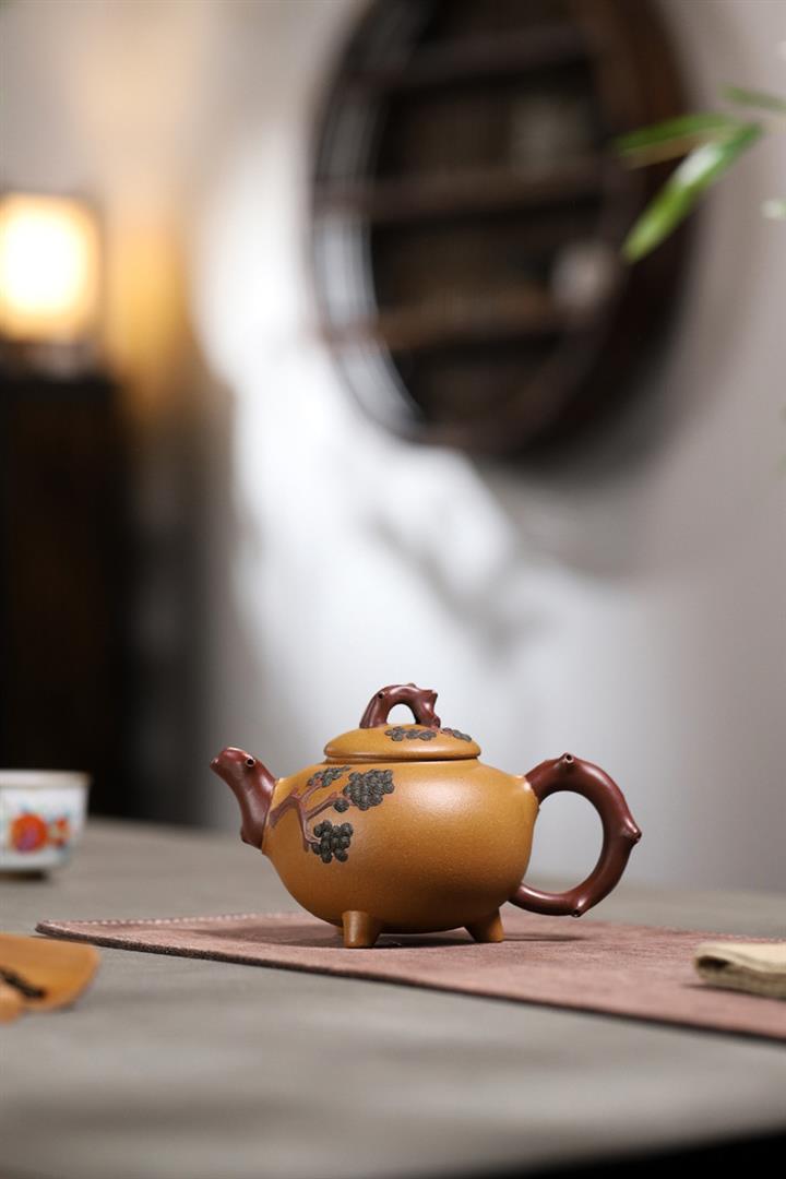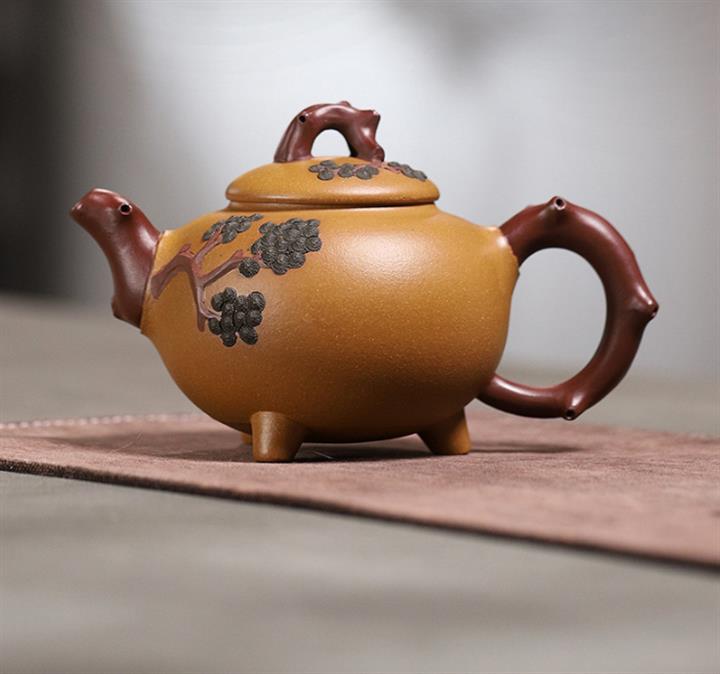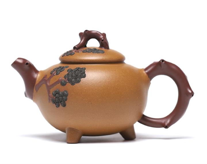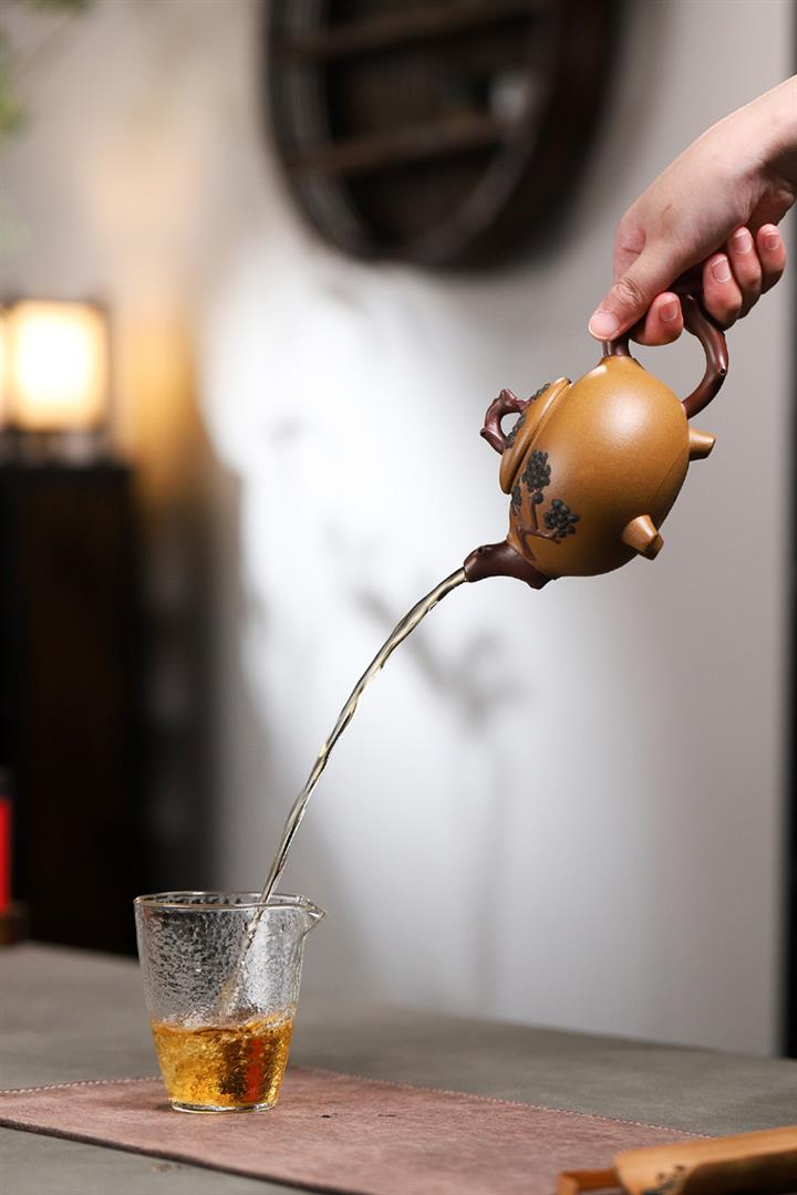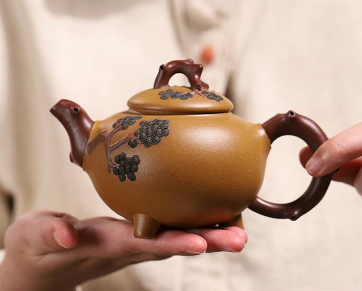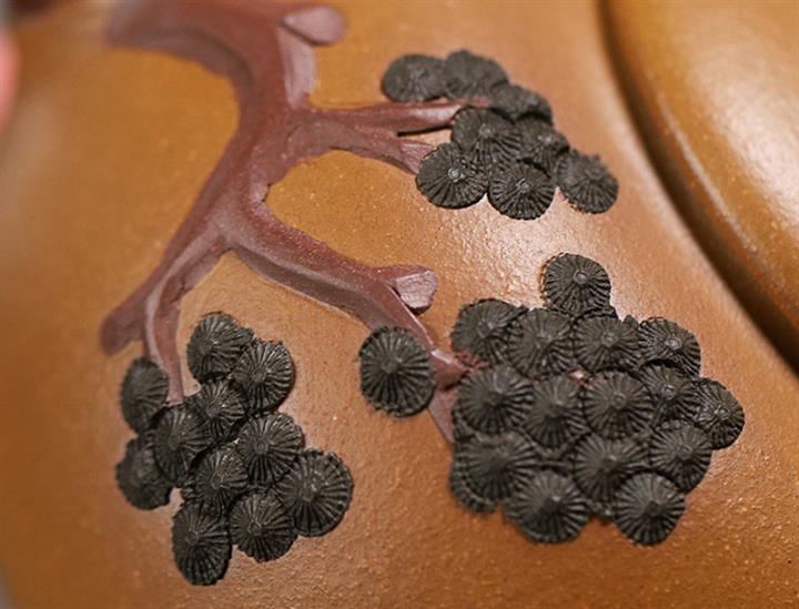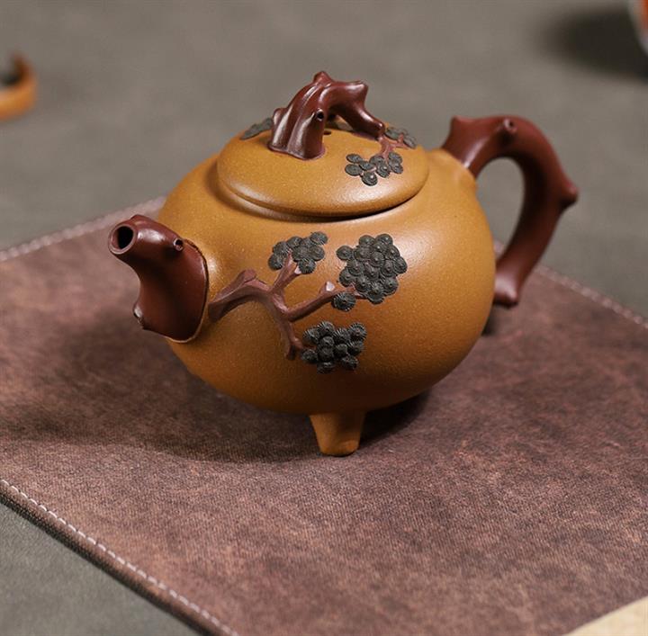 【泥料特點】砂土氣重,似淳實農民,日久使用,漸露鋒芒,養成變化,溫潤莊重。紫砂是壹種雙重氣孔結構的多孔性材質,氣孔微細,密度高。用紫砂壺沏茶,不失原味,且香不渙散,得茶之真香真味。紫砂使用越久,壺身色澤越發光亮照人,氣韻溫雅。紫砂壺長久使用器身會因撫摸擦拭,變得越發溫潤光澤。