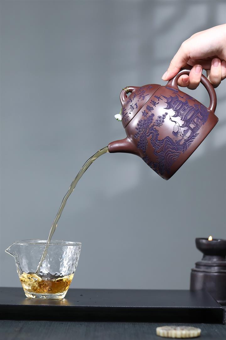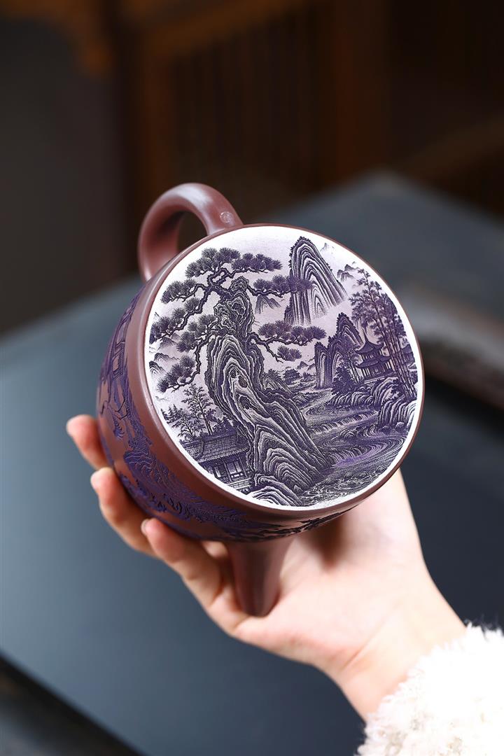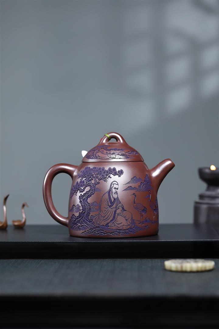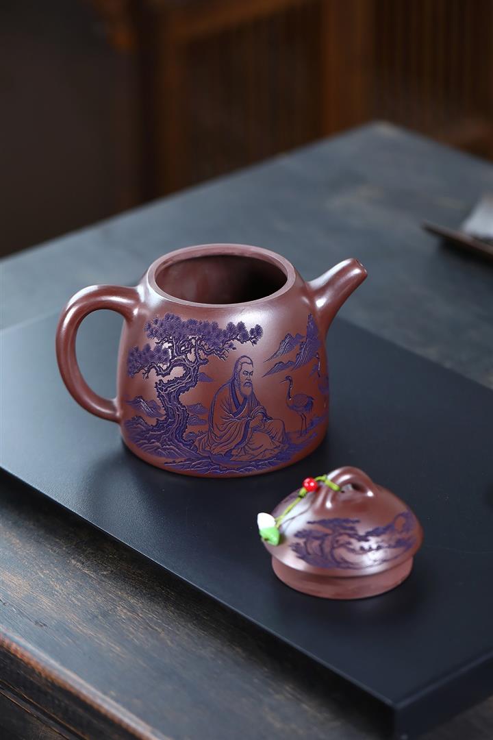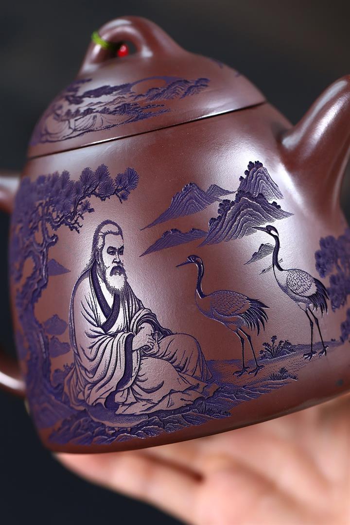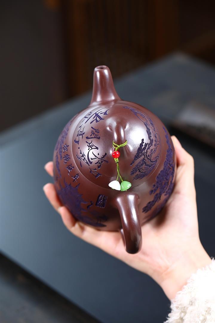 660cc原礦石紅泥滿刻山河鶴影茶壺POT8551