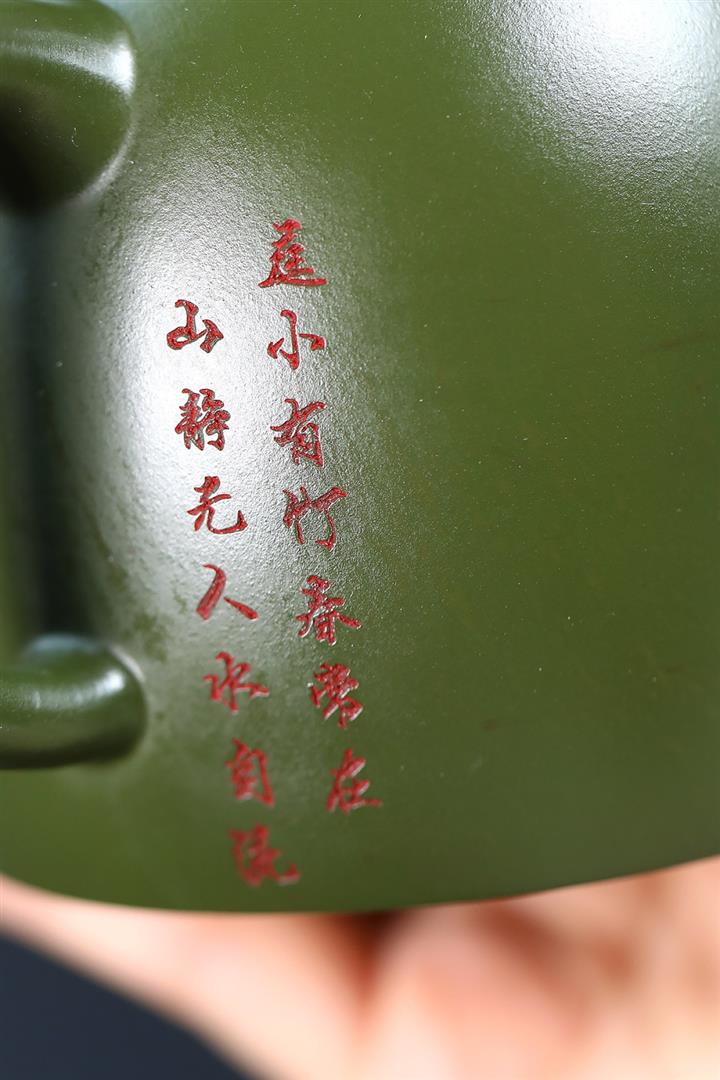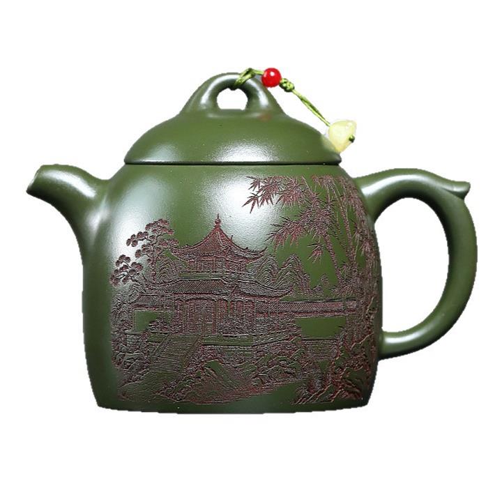 280cc原礦綠泥滿刻竹林松濤秦權茶壺POT8552