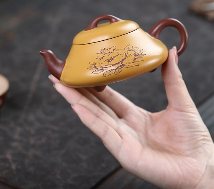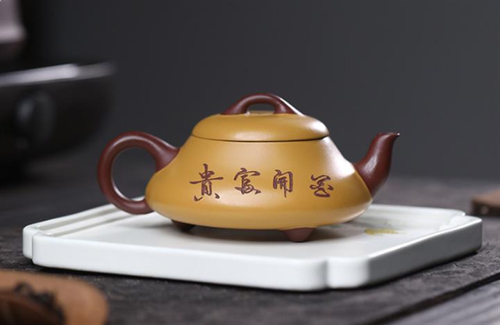 【泥料特點】砂土氣重,似淳實農民,日久使用,漸露鋒芒,養成變化,溫潤莊重。紫砂是壹種雙重氣孔結構的多孔性材質,氣孔微細,密度高。用紫砂壺沏茶,不失原味,且香不渙散,得茶之真香真味。紫砂使用越久,壺身色澤越發光亮照人,氣韻溫雅。紫砂壺長久使用器身會因撫摸擦拭,變得越發溫潤光澤。