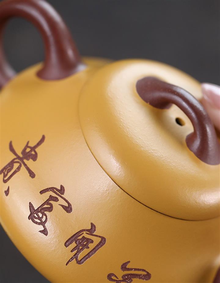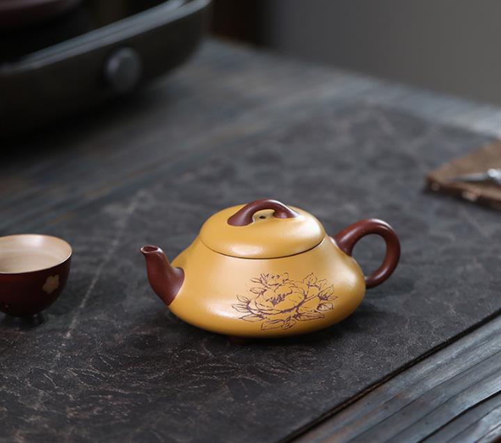 原礦紫砂君子蘭刻繪漢鐸茶壺POT7517