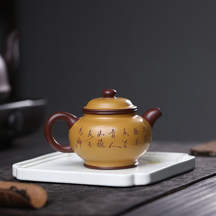 【作品介紹】此款壺形線條流暢,壺把,壺嘴,壺身壹氣呵成栩栩如生,是收藏把玩的好壺,泥料色澤古樸典雅,日久使用,漸露鋒芒,養成變化快,溫潤莊重,用其泡茶,使用的年代久,壺身就溫潤,泡出來的茶湯也就醇郁芳馨。