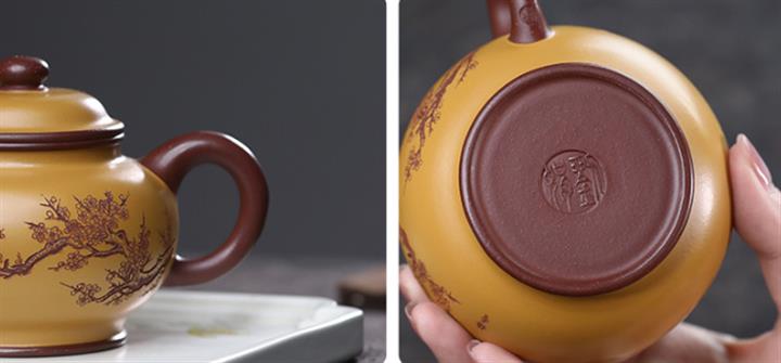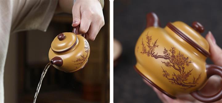 【泥料特點】砂土氣重,似淳實農民,日久使用,漸露鋒芒,養成變化,溫潤莊重。紫砂是壹種雙重氣孔結構的多孔性材質,氣孔微細,密度高。用紫砂壺沏茶,不失原味,且香不渙散,得茶之真香真味。紫砂使用越久,壺身色澤越發光亮照人,氣韻溫雅。紫砂壺長久使用器身會因撫摸擦拭,變得越發溫潤光澤。