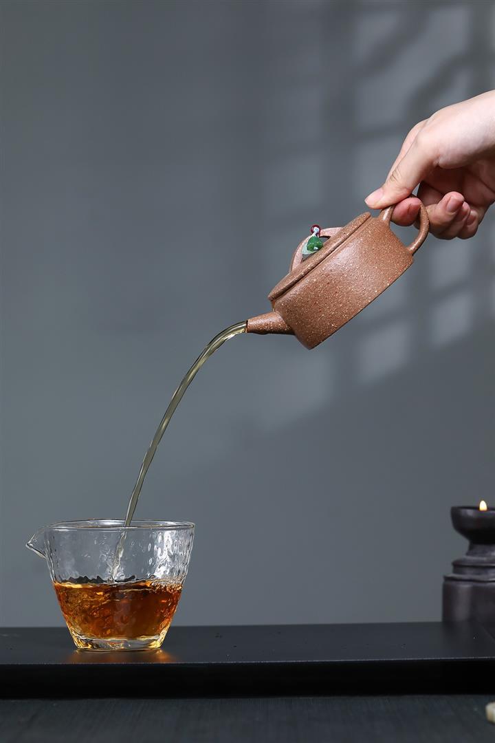 【泥料特點】砂土氣重,似淳實農民,日久使用,漸露鋒芒,養成變化,溫潤莊重。紫砂是壹種雙重氣孔結構的多孔性材質,氣孔微細,密度高。用紫砂壺沏茶,不失原味,且香不渙散,得茶之真香真味。紫砂使用越久,壺身色澤越發光亮照人,氣韻溫雅。紫砂壺長久使用器身會因撫摸擦拭,變得越發溫潤光澤。