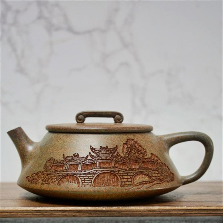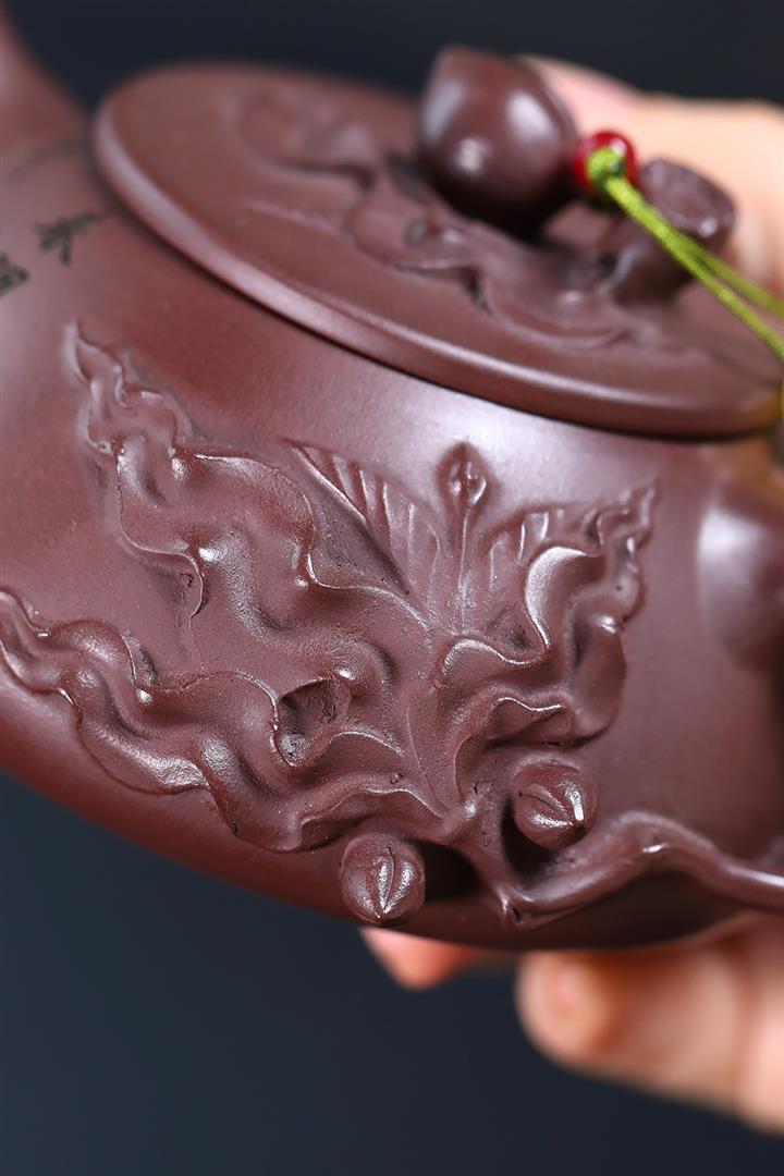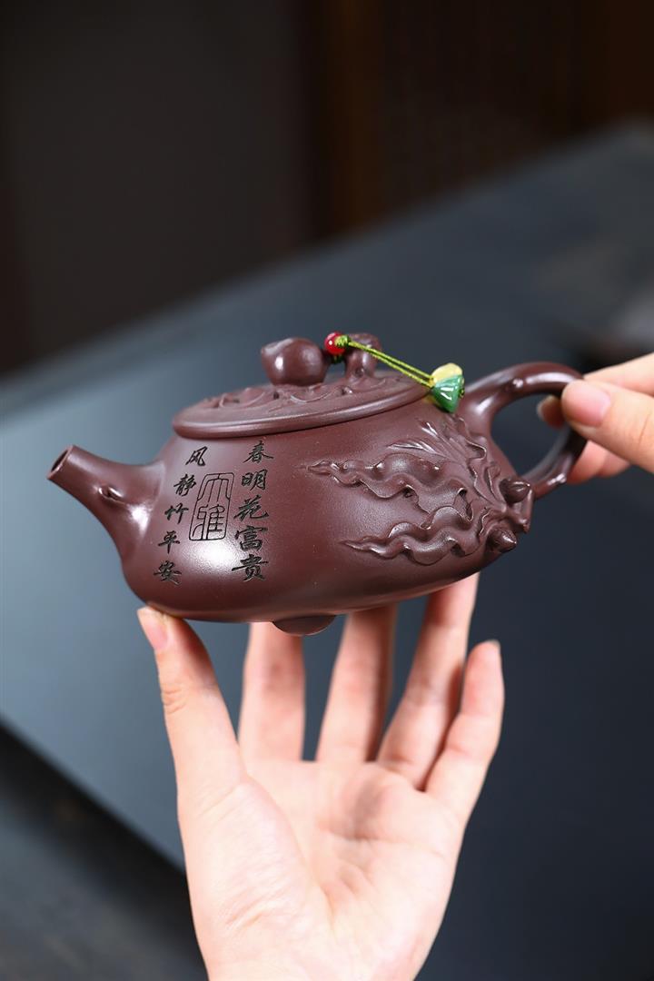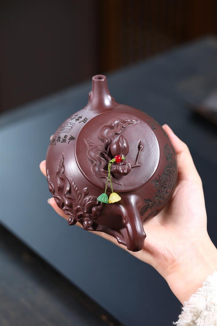 350cc原礦老紫泥桃源逸趣石瓢茶壺POT8615