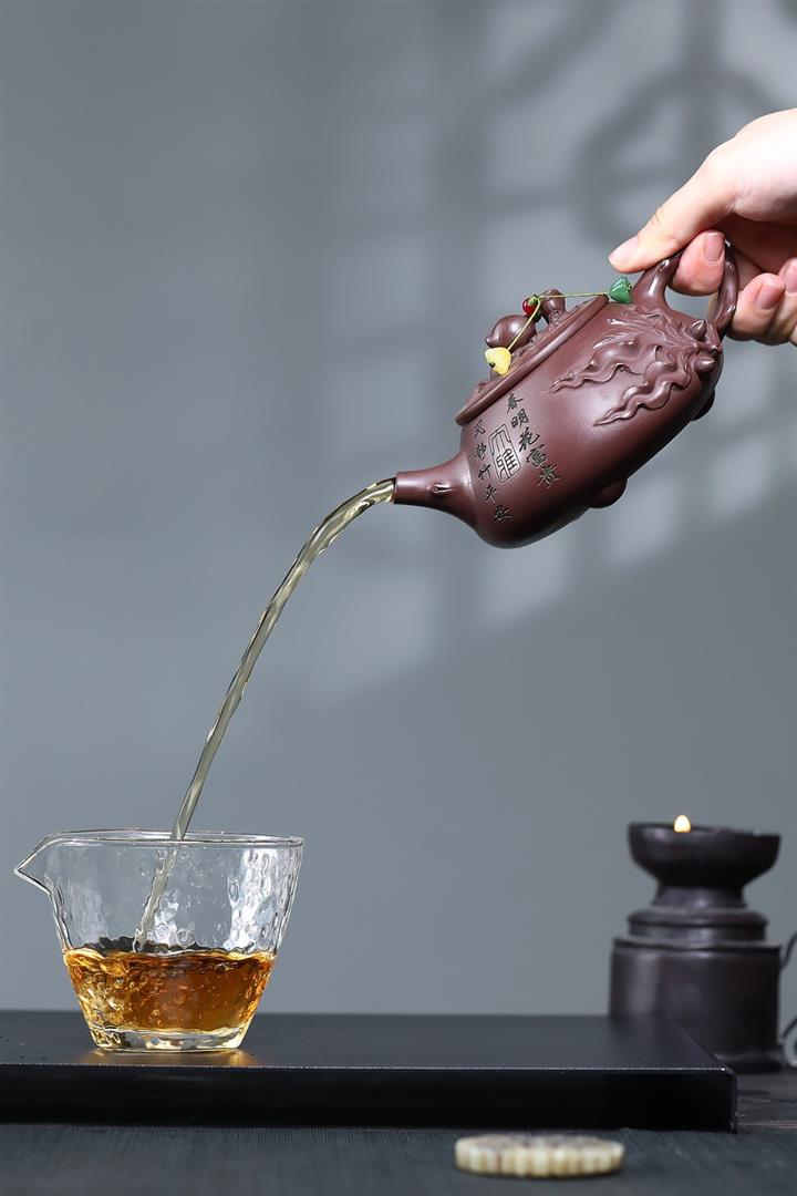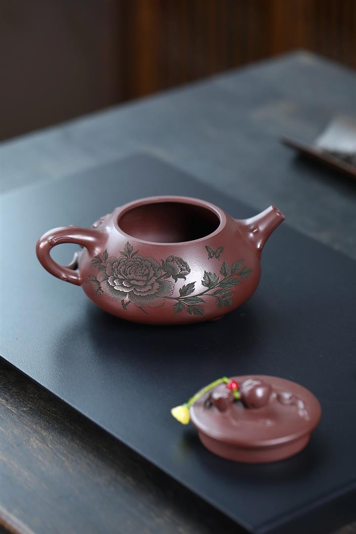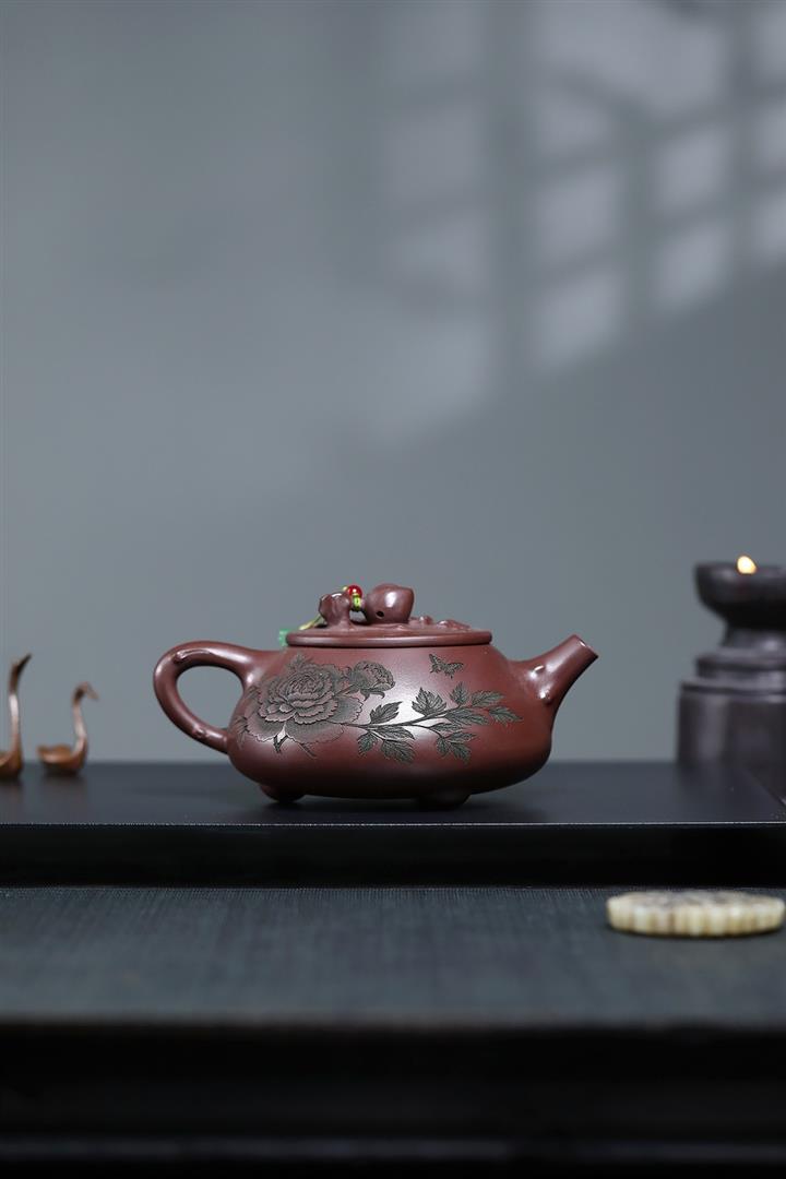 【泥料特點】砂土氣重,似淳實農民,日久使用,漸露鋒芒,養成變化,溫潤莊重。紫砂是壹種雙重氣孔結構的多孔性材質,氣孔微細,密度高。用紫砂壺沏茶,不失原味,且香不渙散,得茶之真香真味。紫砂使用越久,壺身色澤越發光亮照人,氣韻溫雅。紫砂壺長久使用器身會因撫摸擦拭,變得越發溫潤光澤。