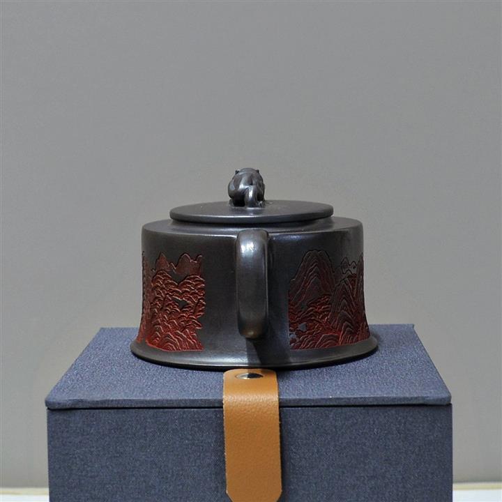 墨綠泥九齡君子蘭幾何周盤茶壺POT6518