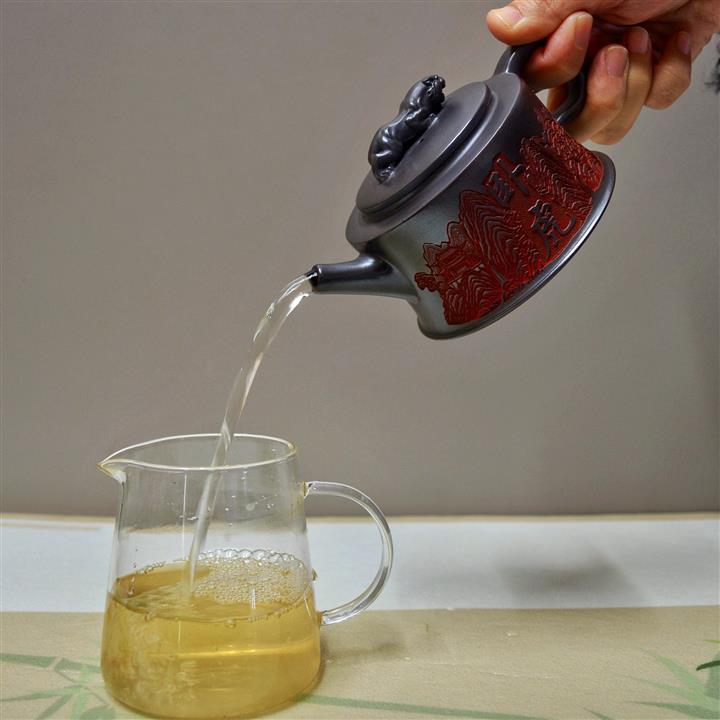 【泥料特點】砂土氣重,似淳實農民,日久使用,漸露鋒芒,養成變化,溫潤莊重。紫砂是壹種雙重氣孔結構的多孔性材質,氣孔微細,密度高。用紫砂壺沏茶,不失原味,且香不渙散,得茶之真香真味。紫砂使用越久,壺身色澤越發光亮照人,氣韻溫雅。紫砂壺長久使用器身會因撫摸擦拭,變得越發溫潤光澤。