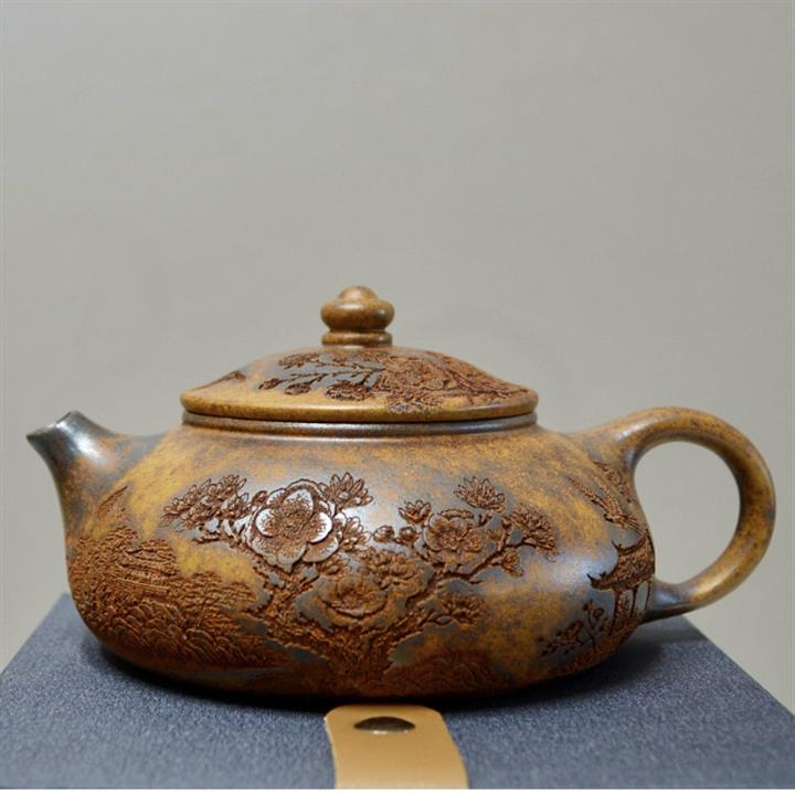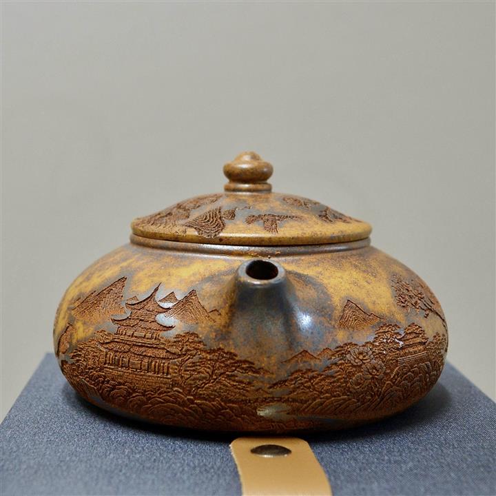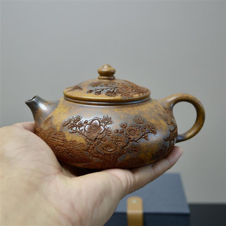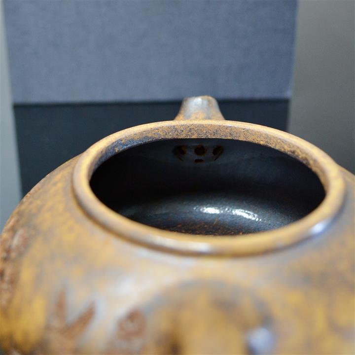 180cc原礦石黃泥逸瓢刻繪茶壺POT8361