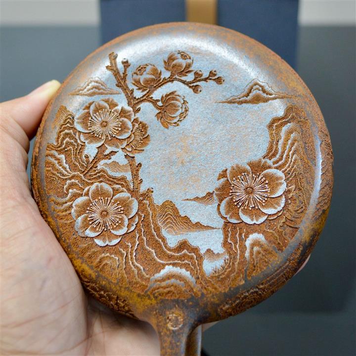 【泥料特點】砂土氣重,似淳實農民,日久使用,漸露鋒芒,養成變化,溫潤莊重。紫砂是壹種雙重氣孔結構的多孔性材質,氣孔微細,密度高。用紫砂壺沏茶,不失原味,且香不渙散,得茶之真香真味。紫砂使用越久,壺身色澤越發光亮照人,氣韻溫雅。紫砂壺長久使用器身會因撫摸擦拭,變得越發溫潤光澤。