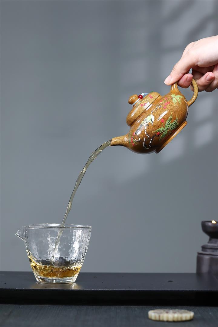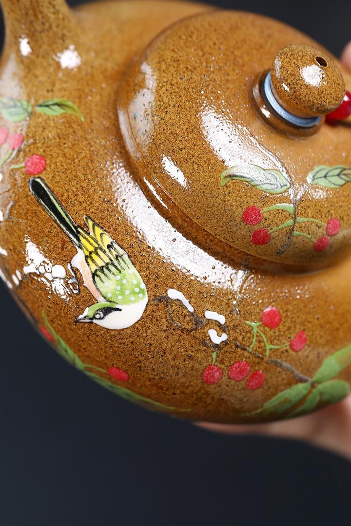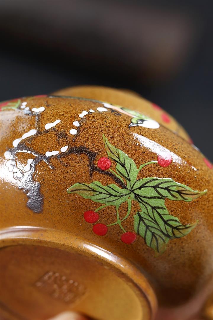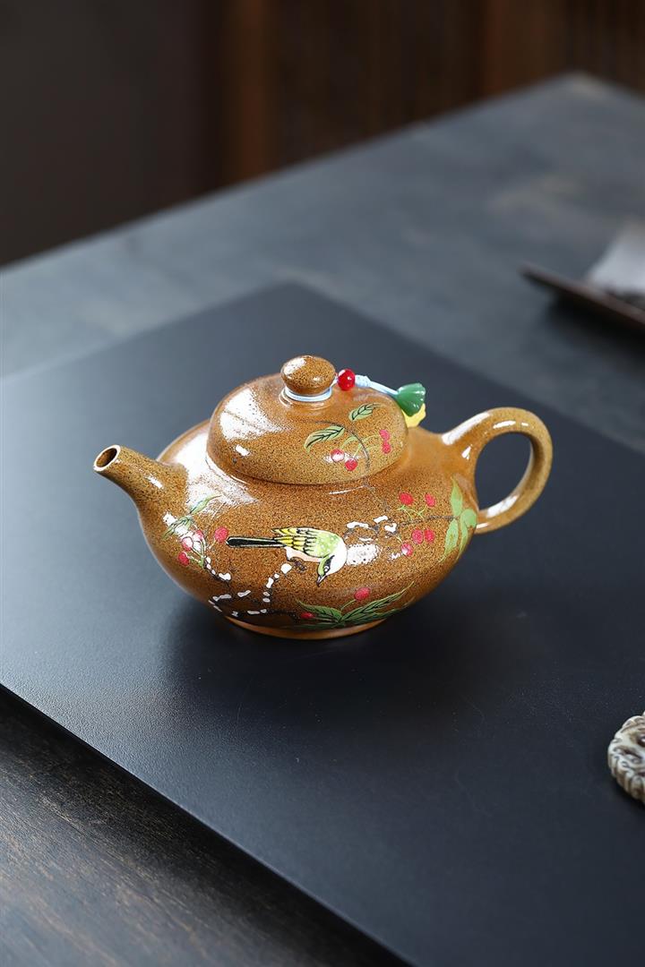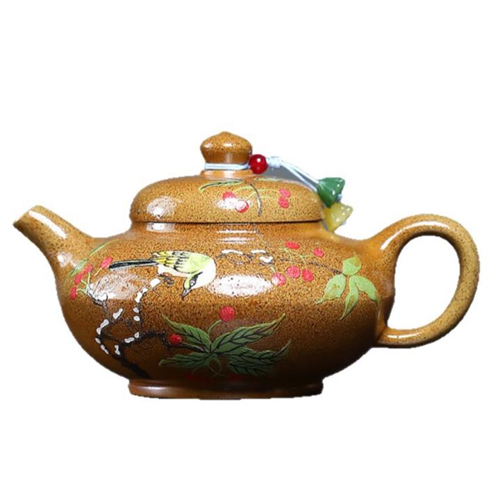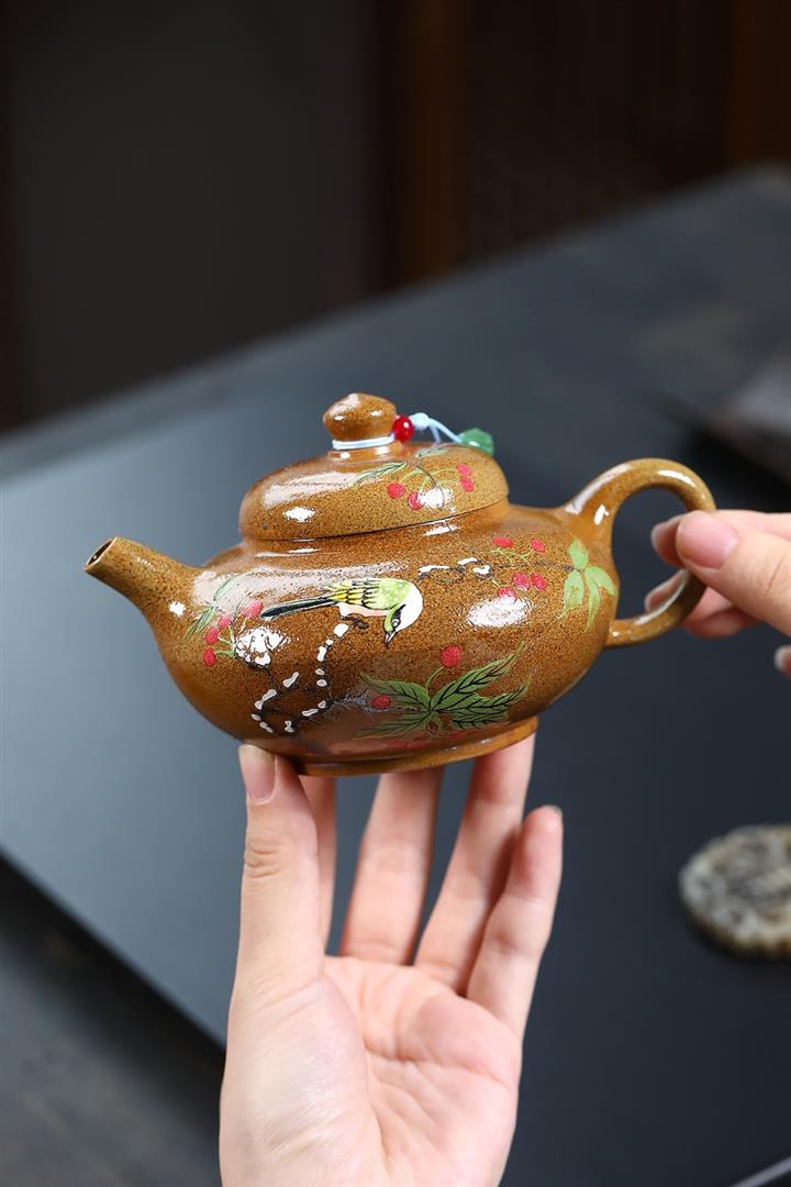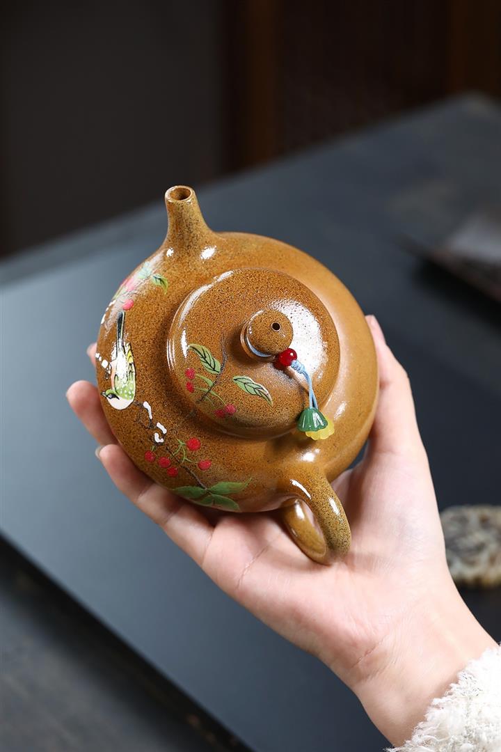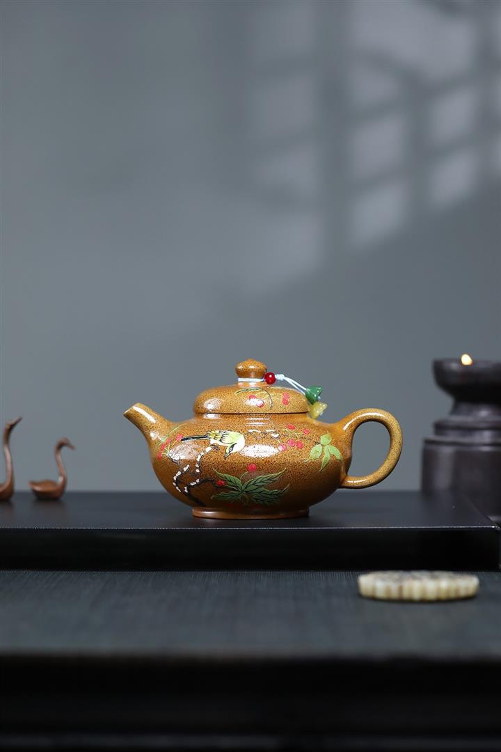 原礦玄鐵石黃琺瑯笑櫻泡茶壺POT7853