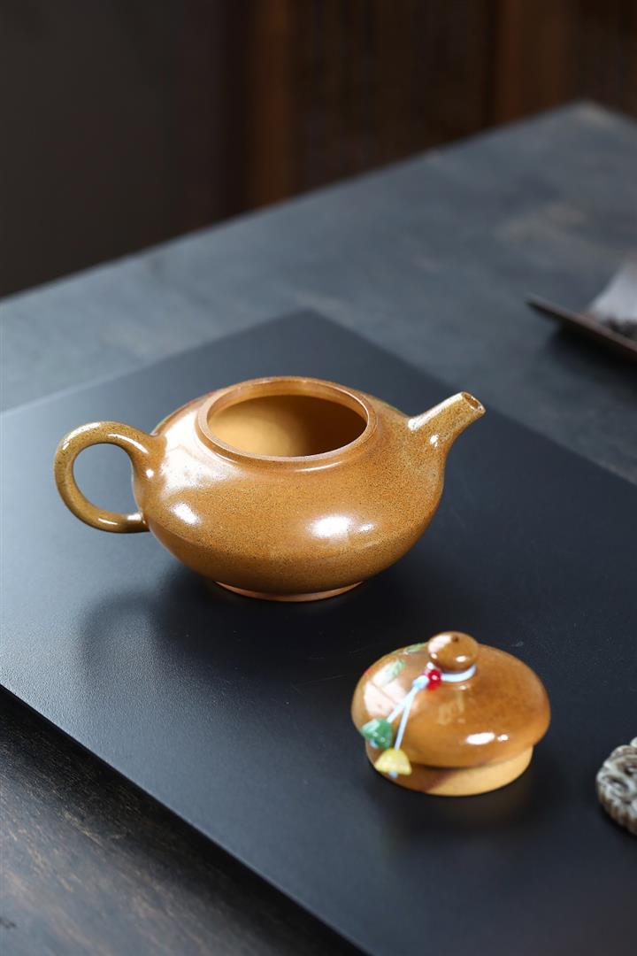 原礦玄鐵石黃琺瑯柱礎泡茶壺POT7852