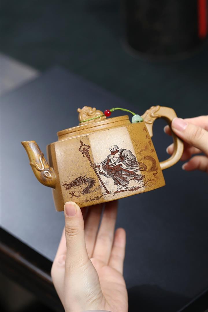 370cc原礦龍骨金砂柴燒羅漢八方茶壺POT8631