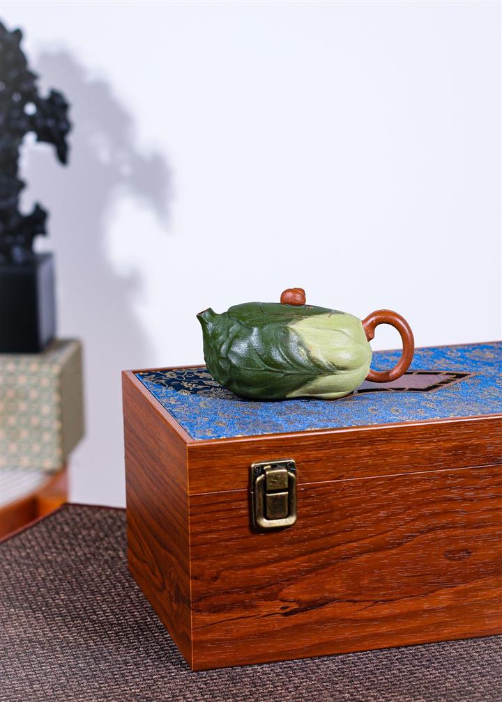 【泥料特點】砂土氣重,似淳實農民,日久使用,漸露鋒芒,養成變化,溫潤莊重。紫砂是壹種雙重氣孔結構的多孔性材質,氣孔微細,密度高。用紫砂壺沏茶,不失原味,且香不渙散,得茶之真香真味。紫砂使用越久,壺身色澤越發光亮照人,氣韻溫雅。紫砂壺長久使用器身會因撫摸擦拭,變得越發溫潤光澤。