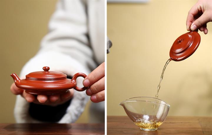 【泥料特點】砂土氣重,似淳實農民,日久使用,漸露鋒芒,養成變化,溫潤莊重。紫砂是壹種雙重氣孔結構的多孔性材質,氣孔微細,密度高。用紫砂壺沏茶,不失原味,且香不渙散,得茶之真香真味。紫砂使用越久,壺身色澤越發光亮照人,氣韻溫雅。紫砂壺長久使用器身會因撫摸擦拭,變得越發溫潤光澤。