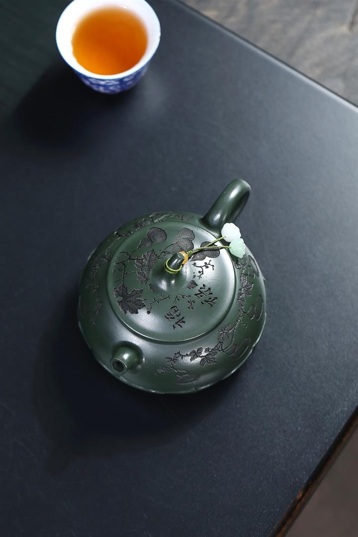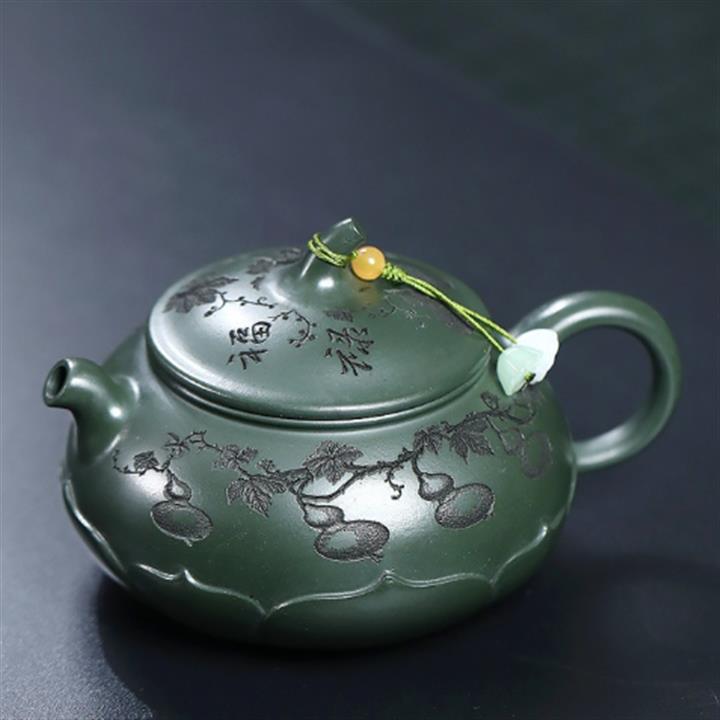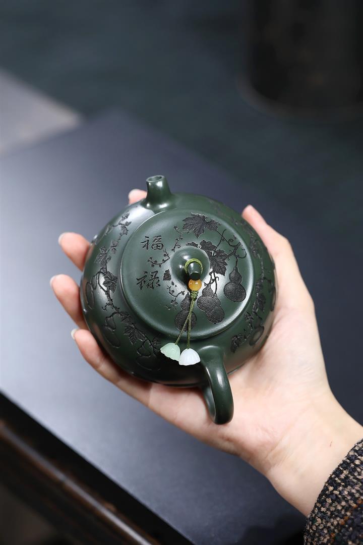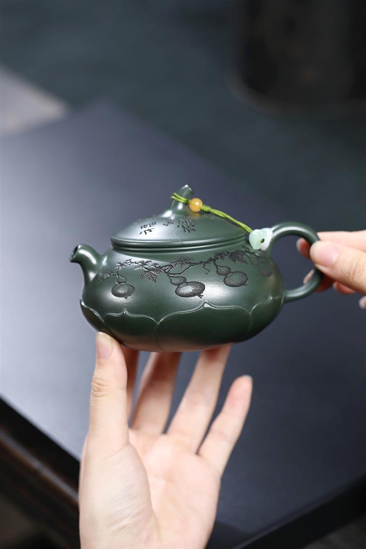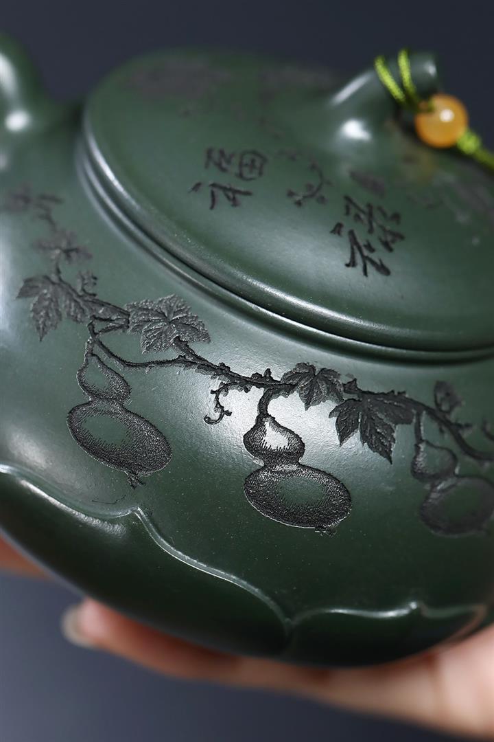 原礦綠泥手工刻青龍金匱紫砂壺POT6491