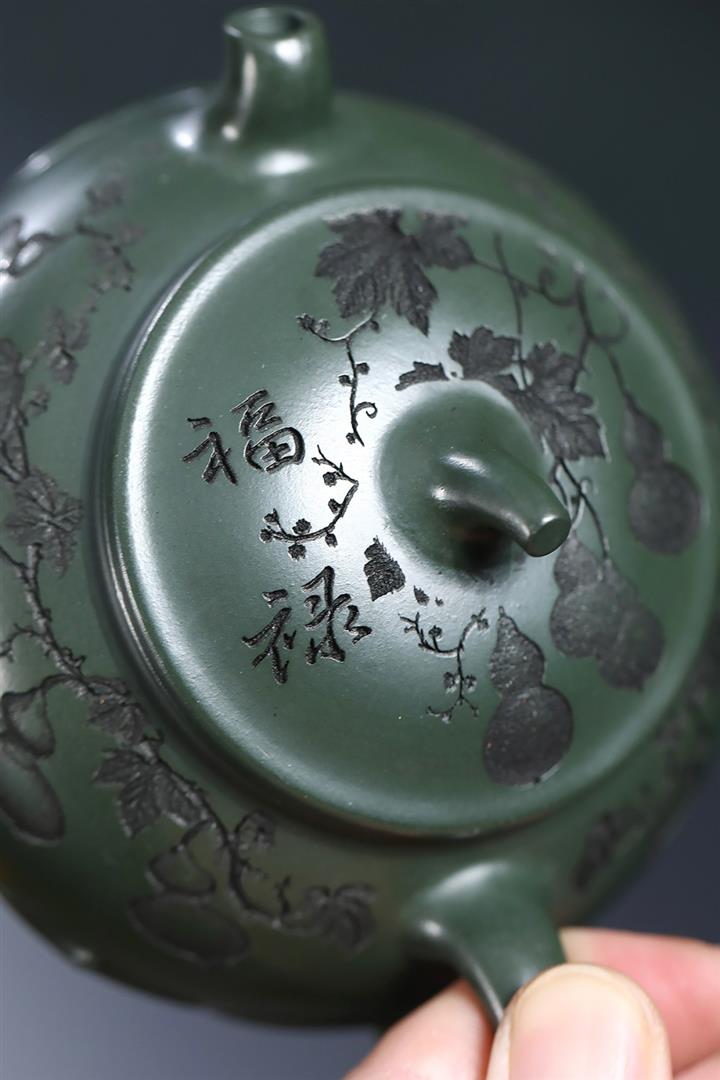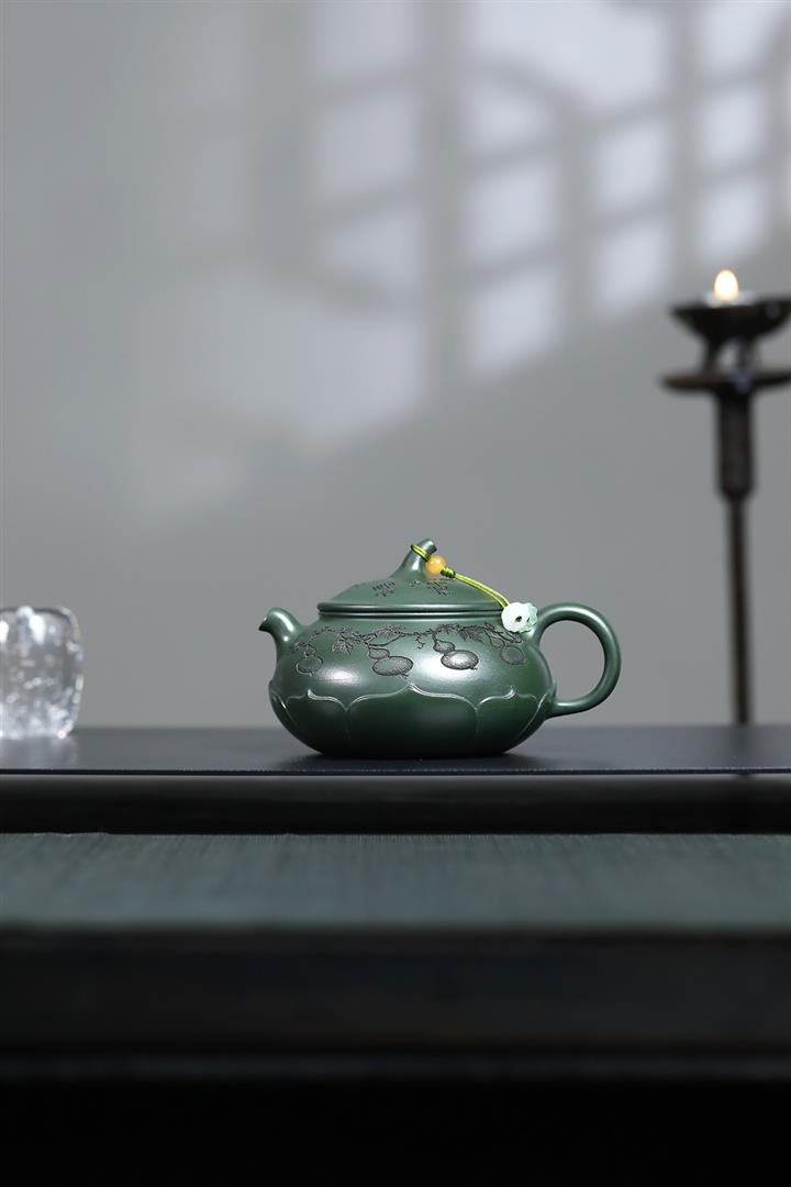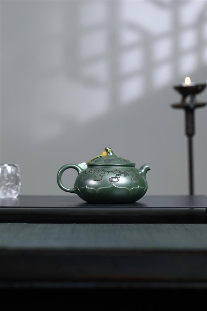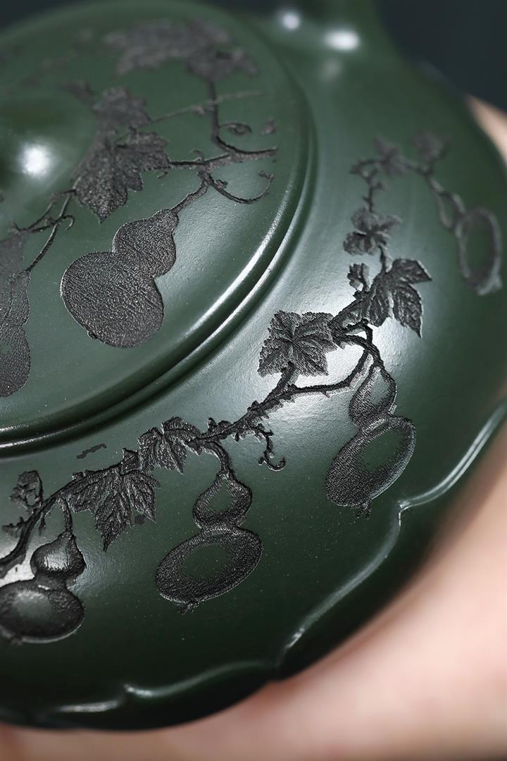 原礦綠泥手工刻青龍金匱紫砂壺POT6491