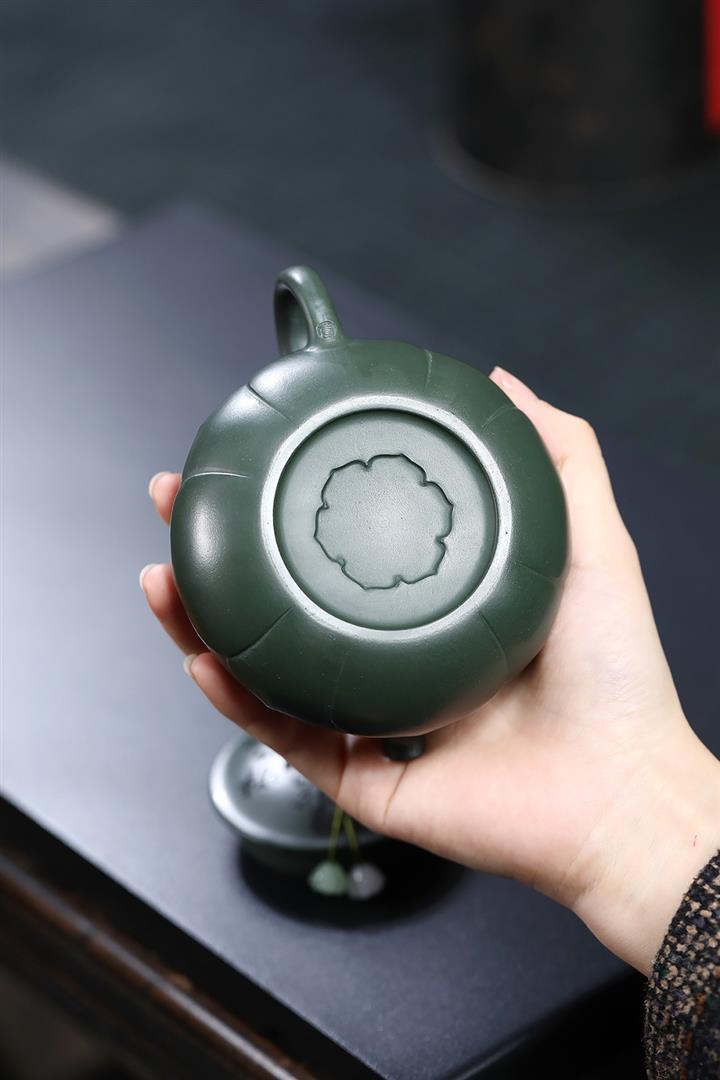 250cc原礦綠泥福祿同春茄瓜茶壺POT8640
